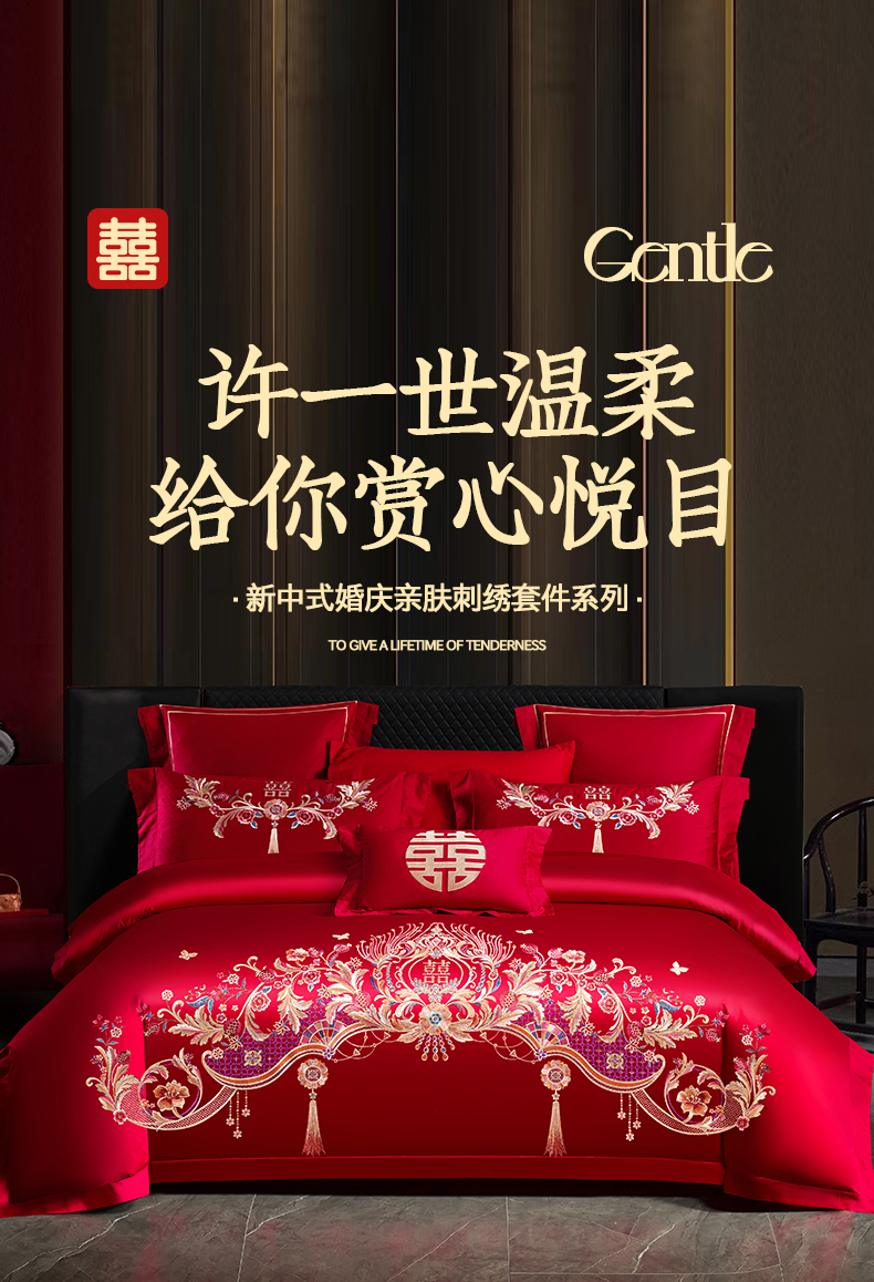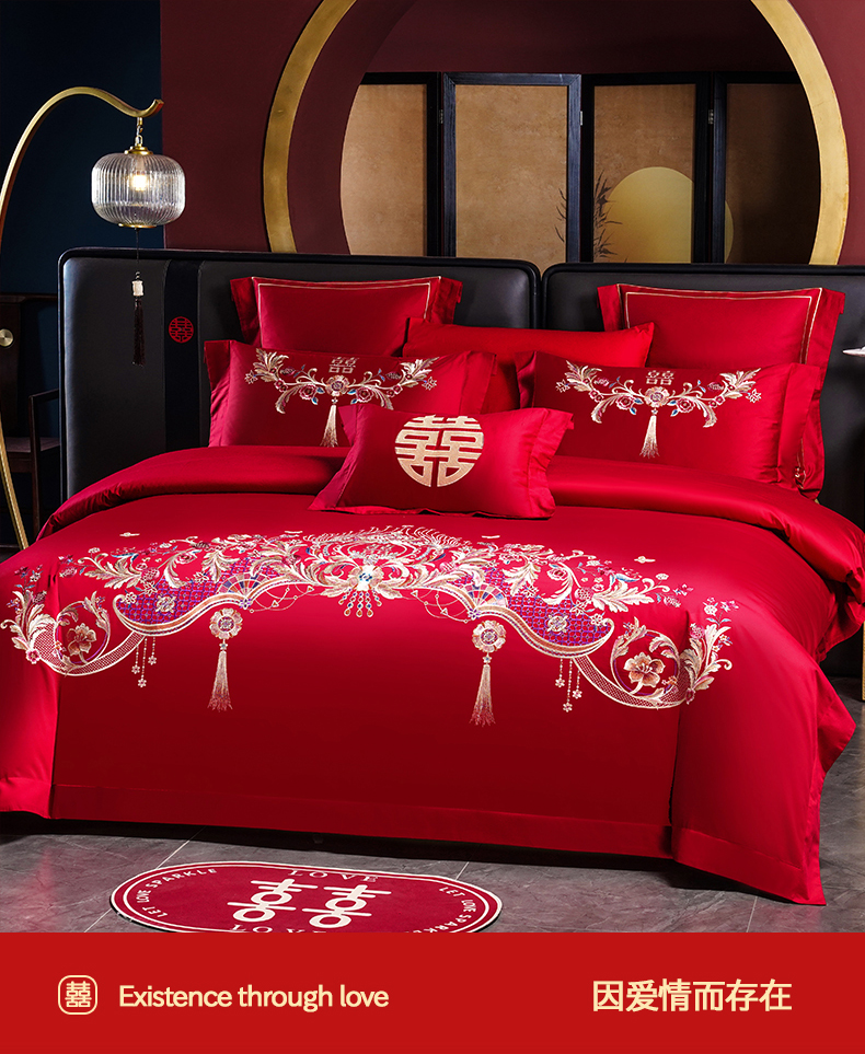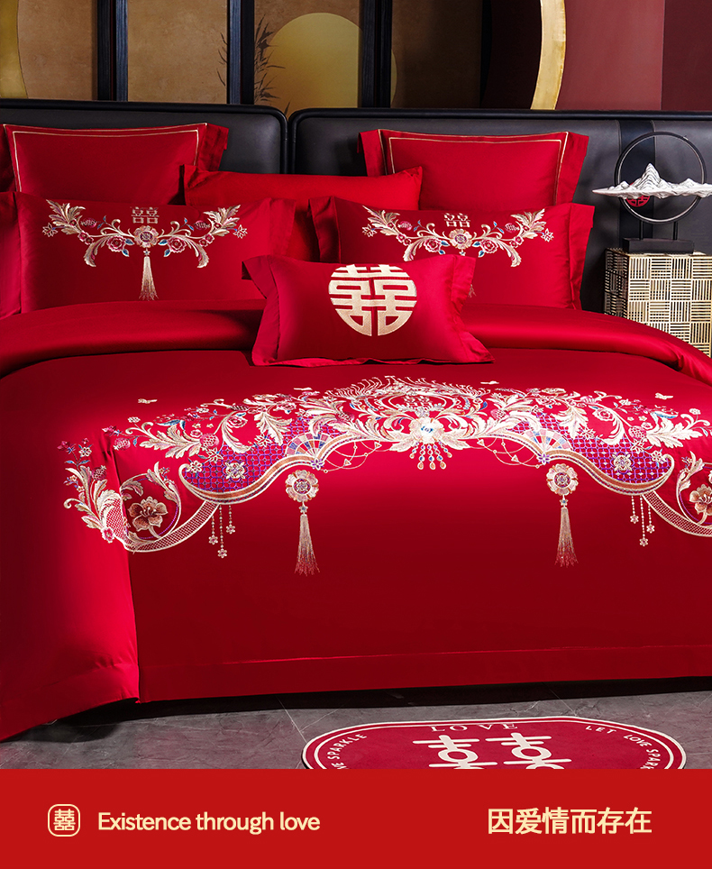当前位置: 91家纺网 > 商品网购 > 床品套件 > 四件套 > 婚庆四件套 > 置顶家纺 2025新款新中式婚庆亲肤刺绣四件套 天作之合-大红