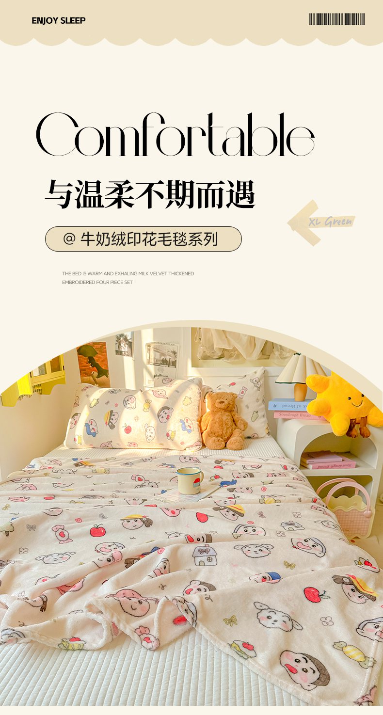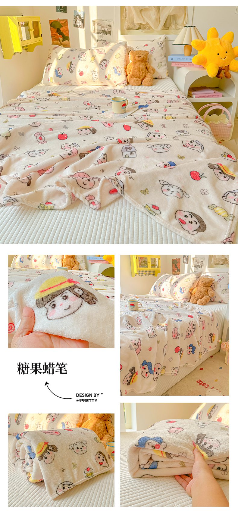 商品名称:韩巢家纺 2025新款四季可用牛奶绒多功能毛毯 糖果蜡笔