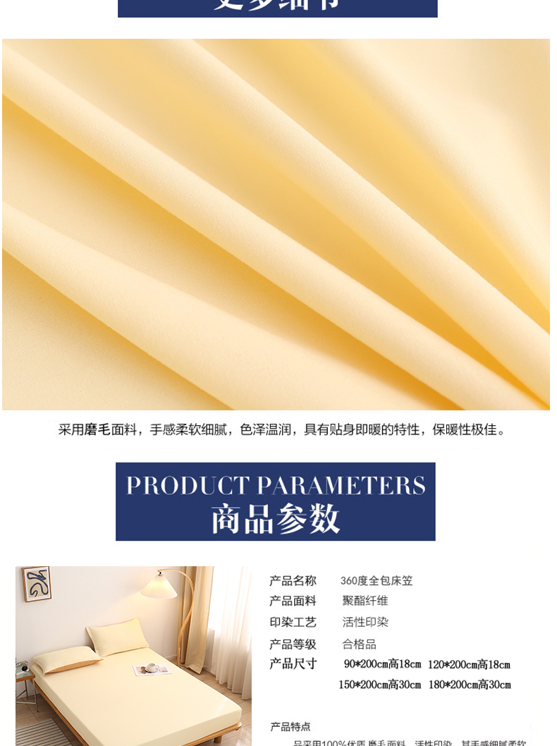 商品名称:啊雅家居 2025新款简约单人床笠双人床笠水洗磨毛床笠 梦幻黄