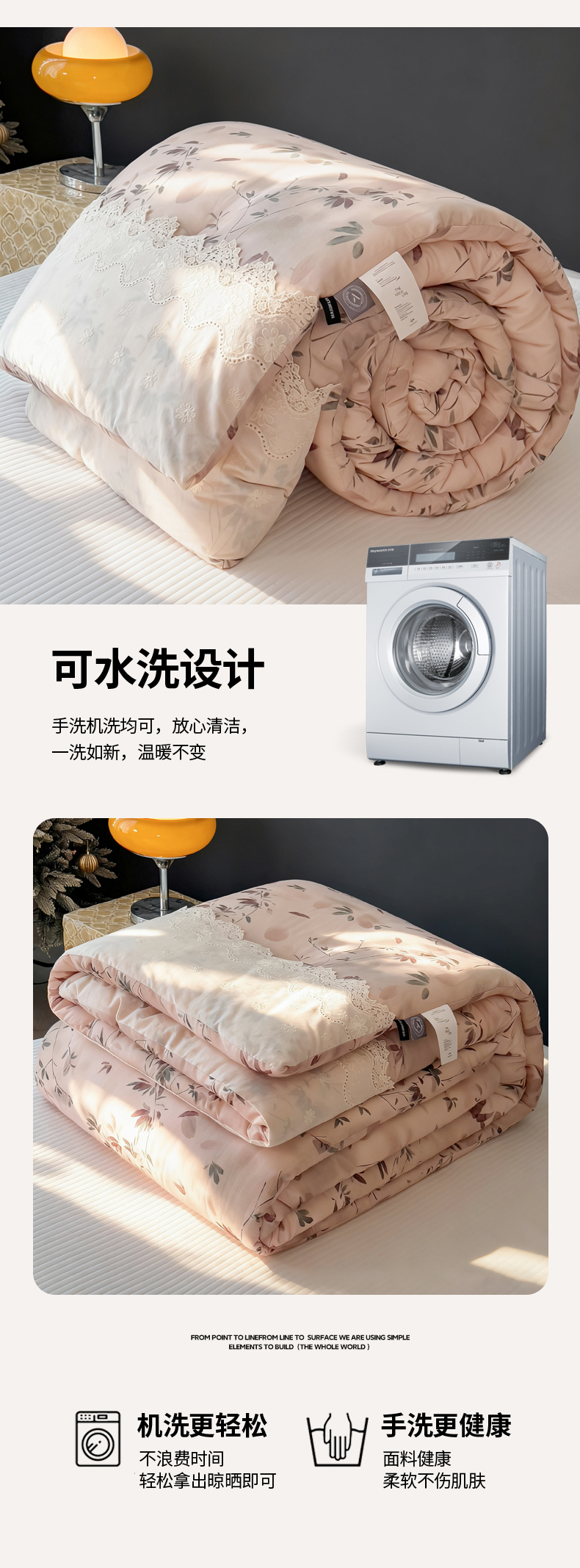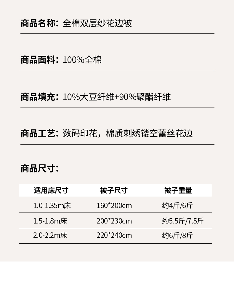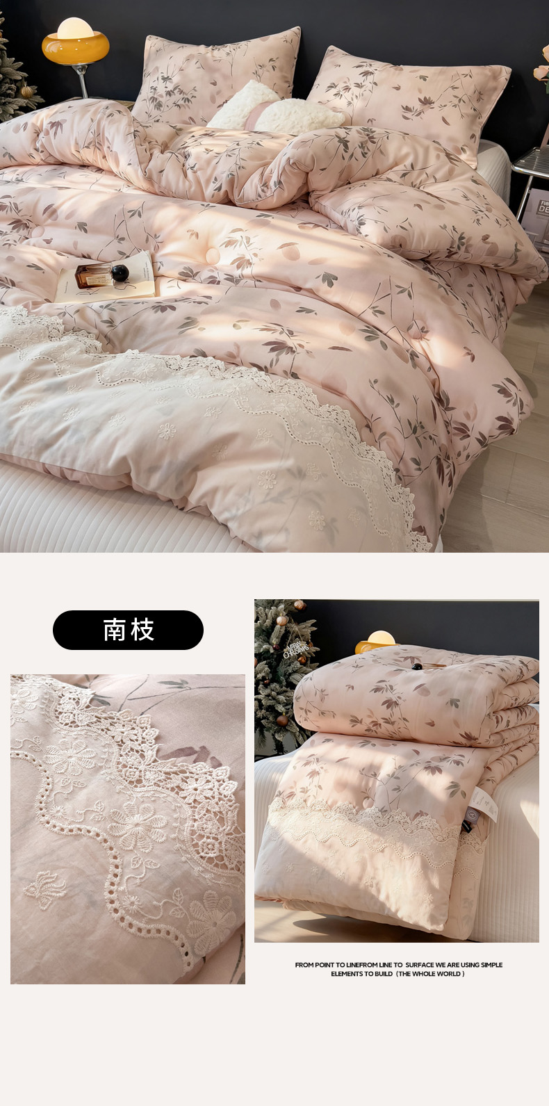 商品名称:米菲 2025新款全棉双层纱花边被被子被芯 南枝