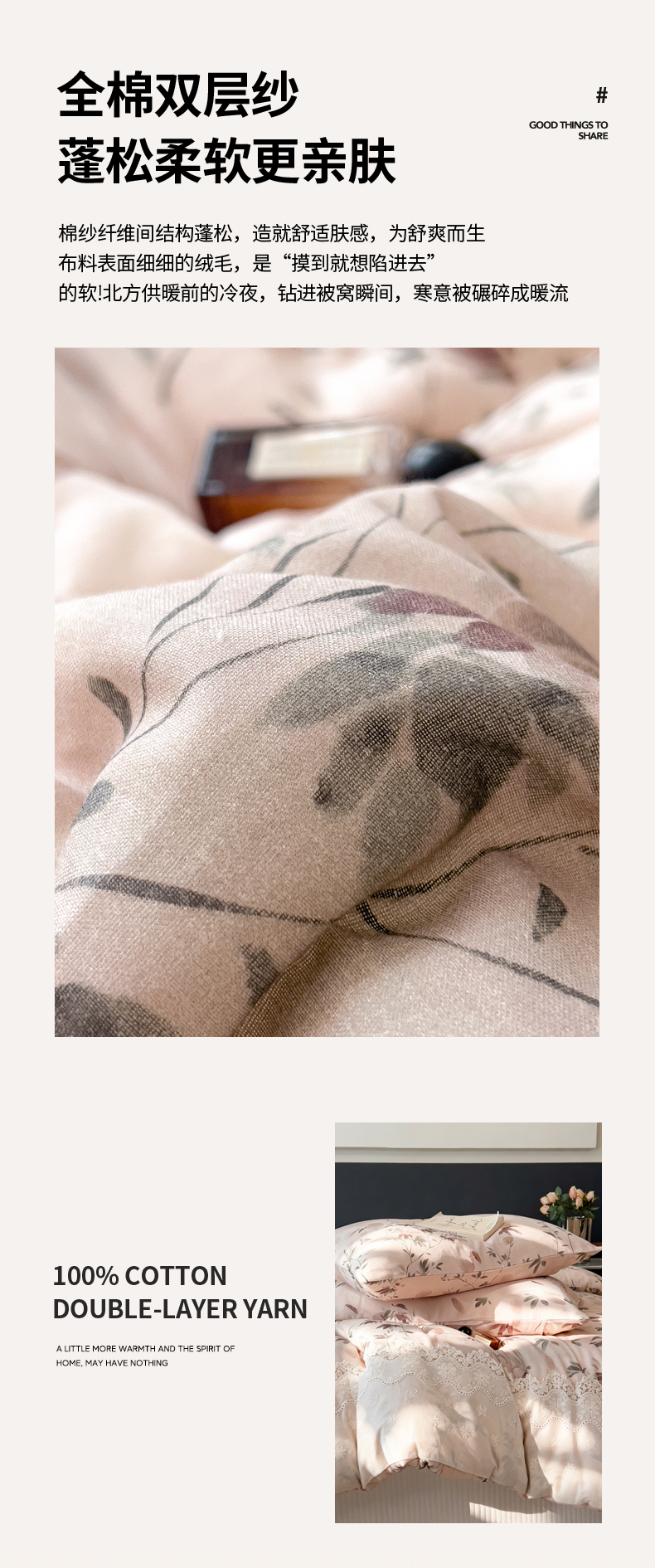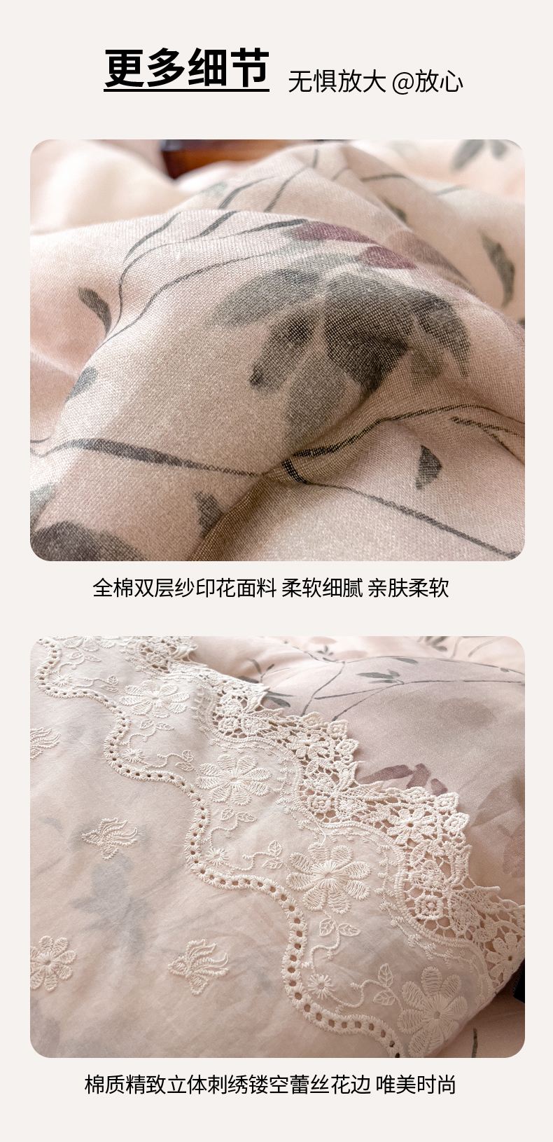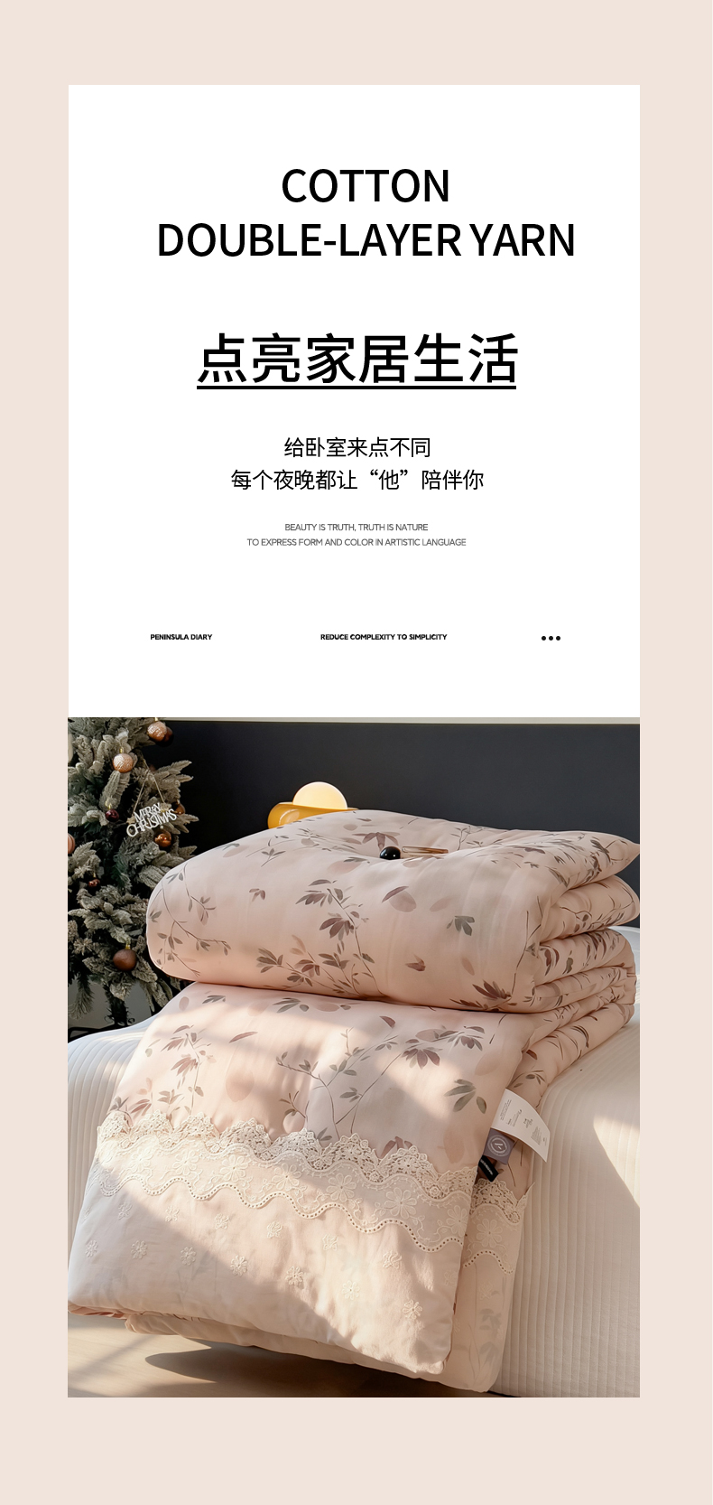 (总)米菲 2025新款全棉双层纱花边被被子被芯,初春,简约格调,南枝