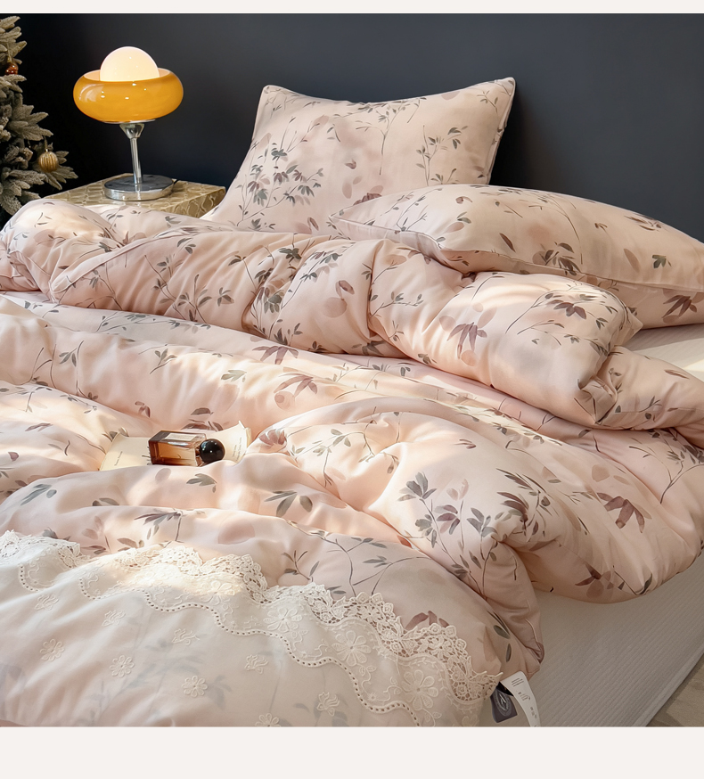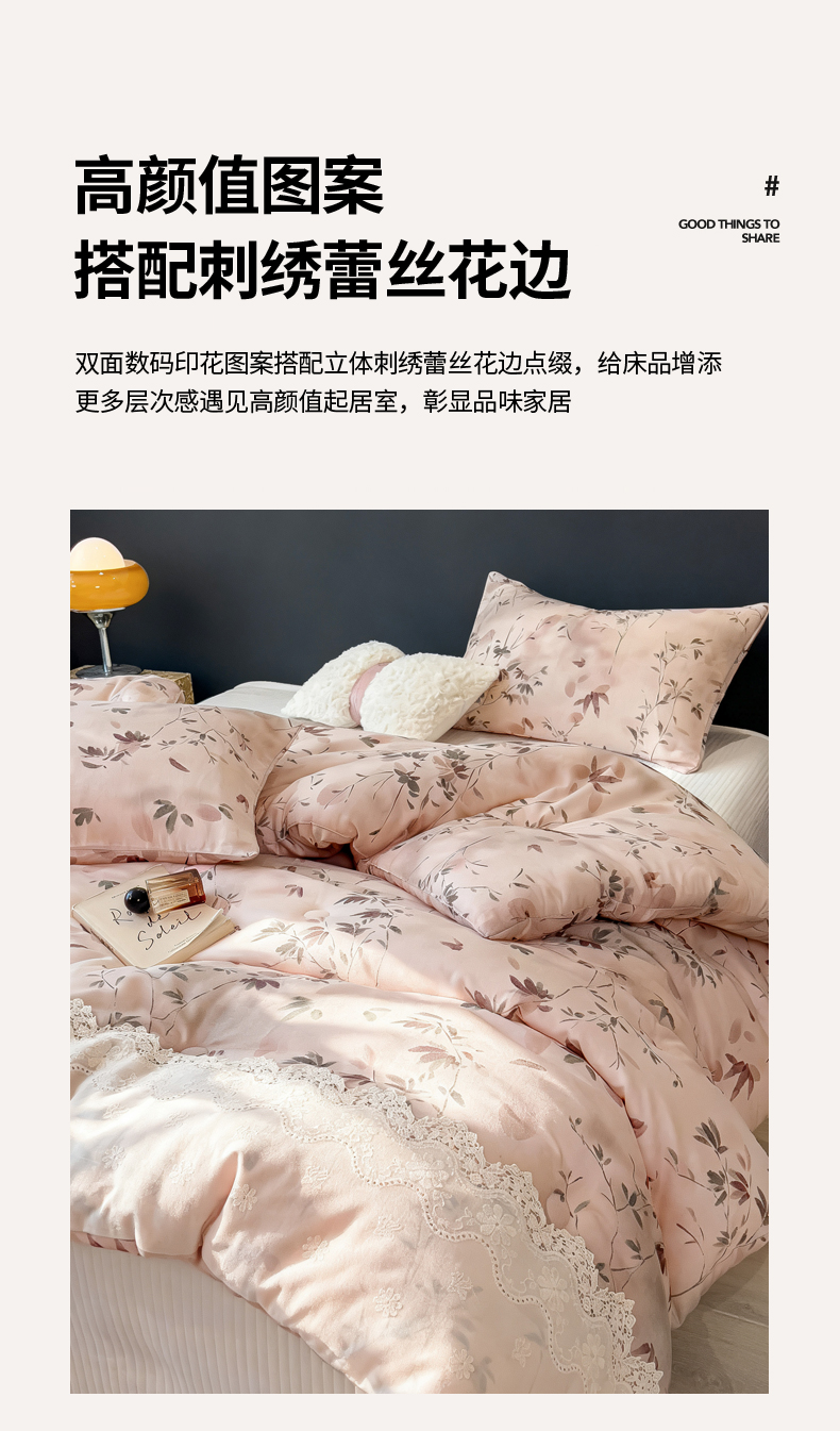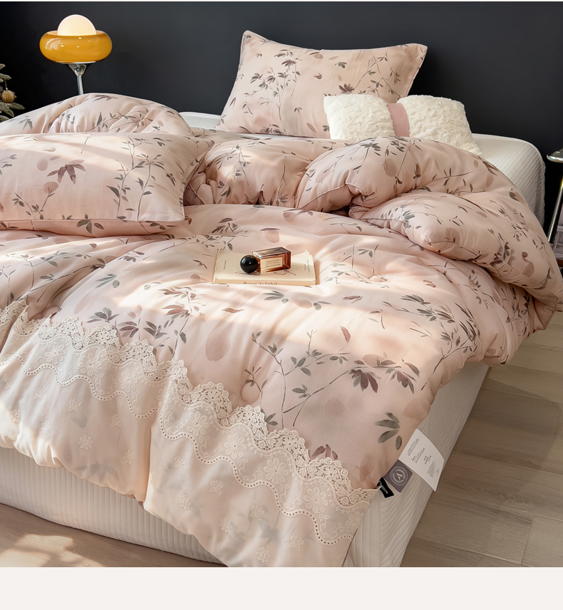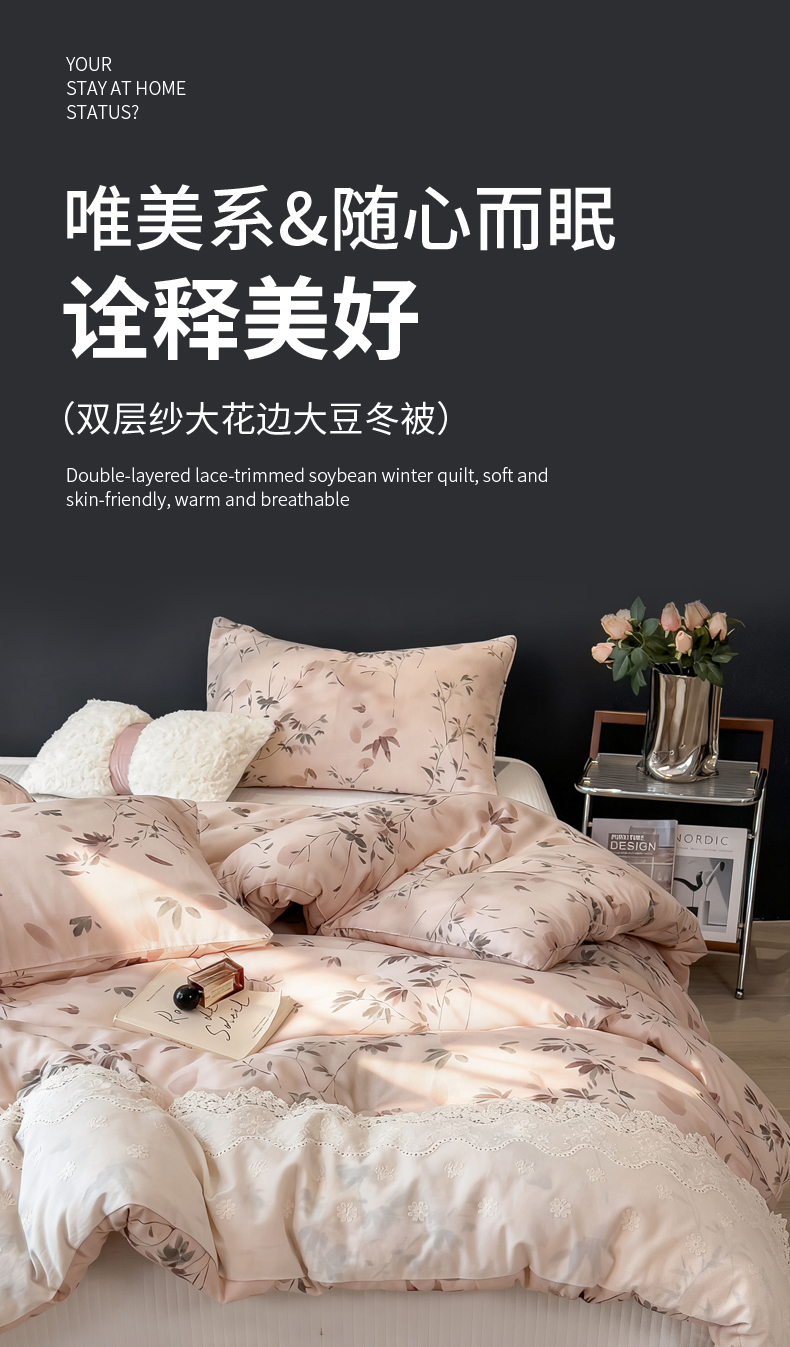 (总)米菲 2025新款全棉双层纱花边被被子被芯,初春,简约格调,南枝