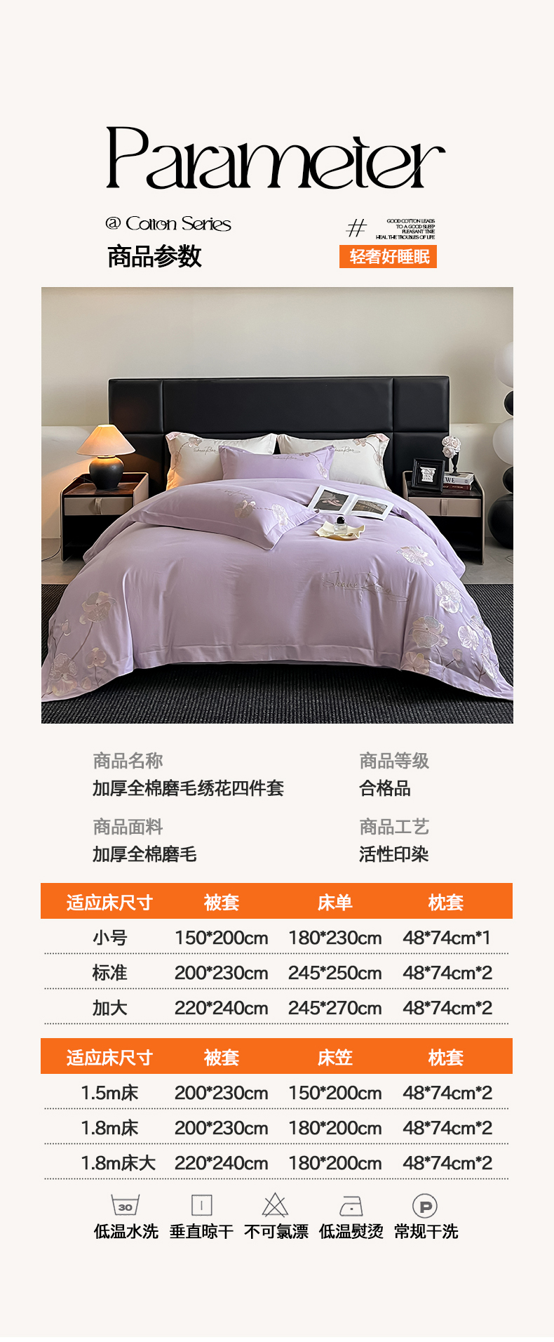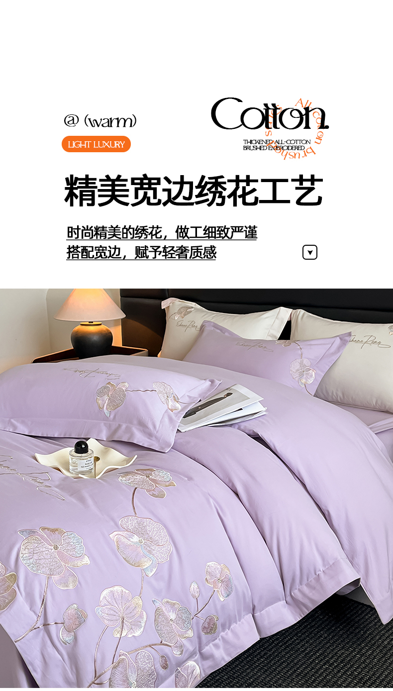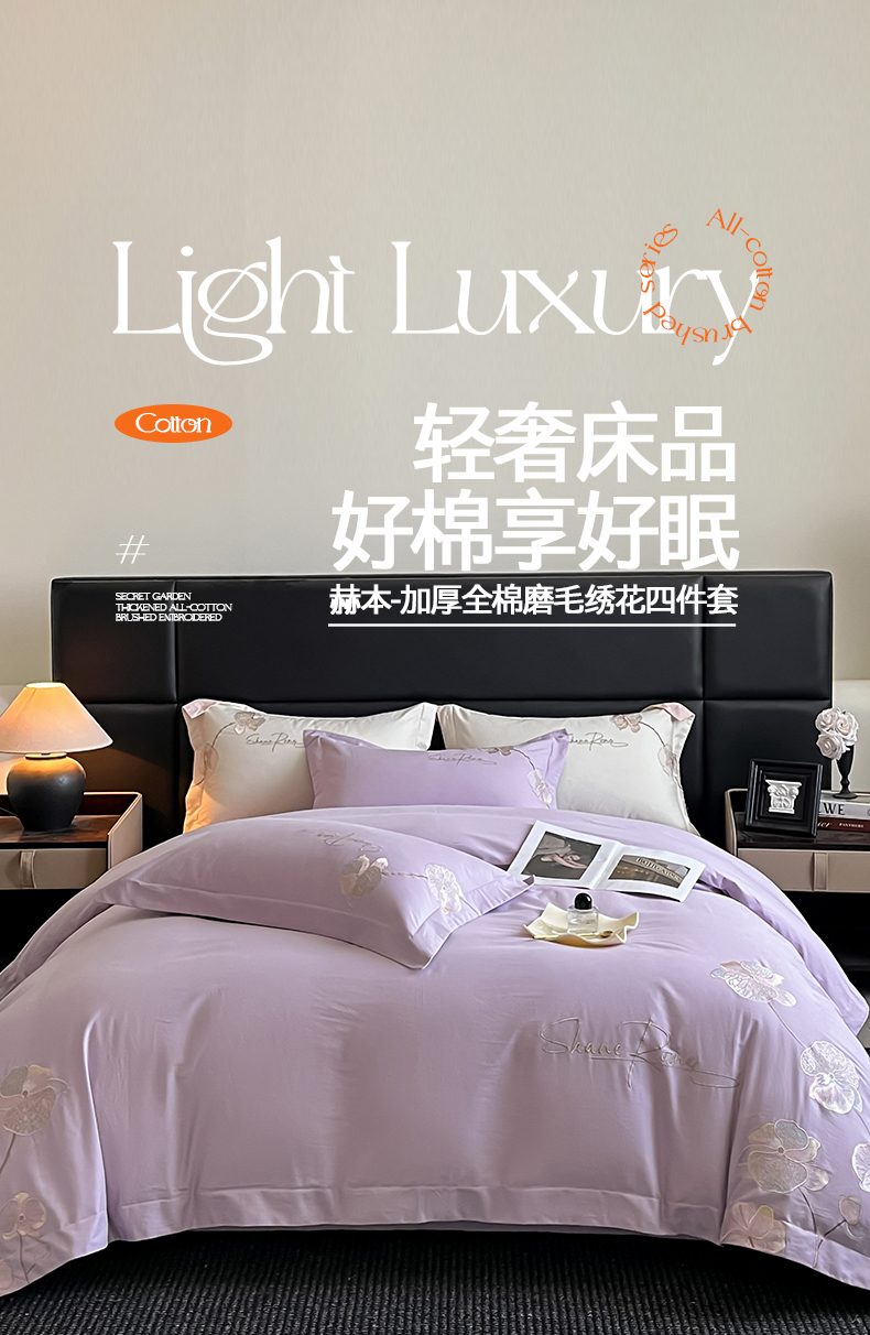 当前位置: 91家纺网 > 商品网购 > 床品套件 > 四件套 > 磨毛活性四件套 > 置顶家纺 2025新款全棉加厚磨毛刺绣秋冬系列四件套-赫本 赫本-香芋紫