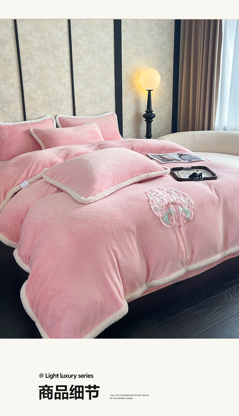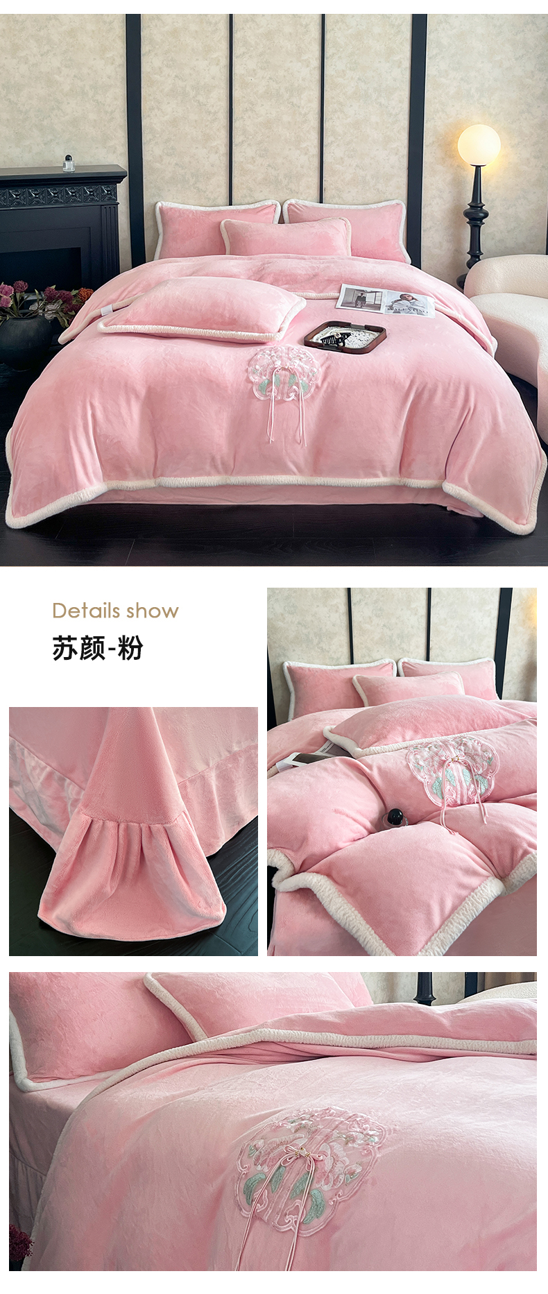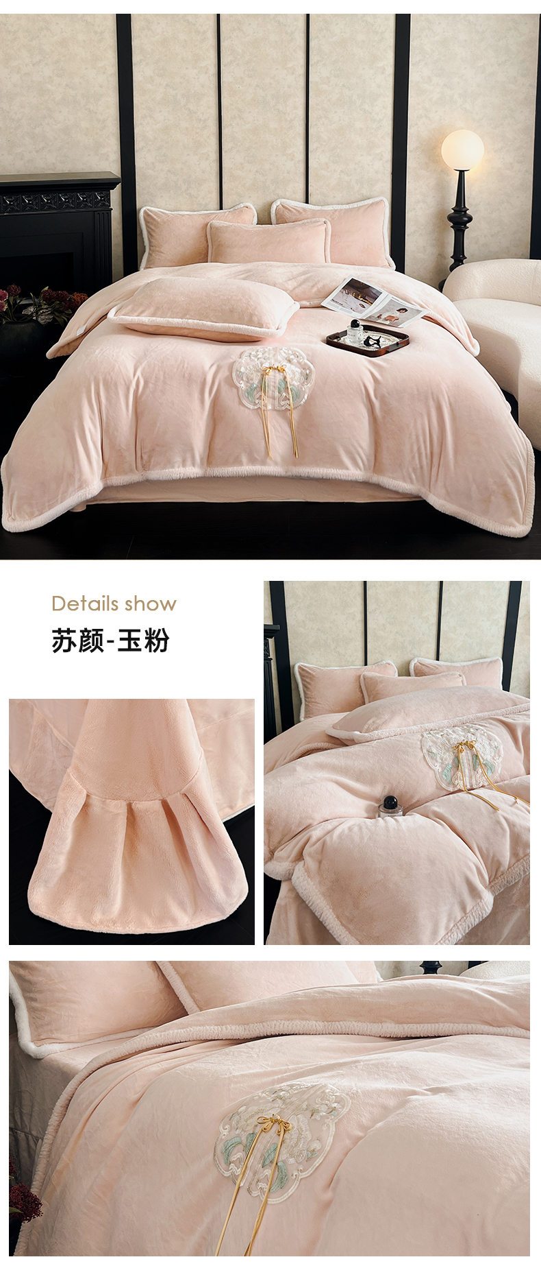 诺梵家纺 2025新款兔毛包边中式绣花四件套-苏颜 苏颜-玉粉