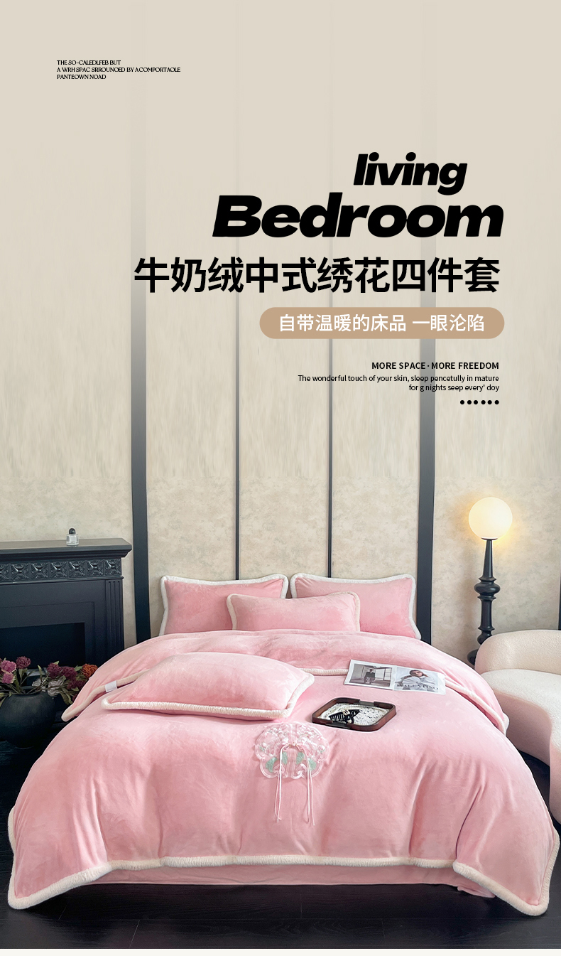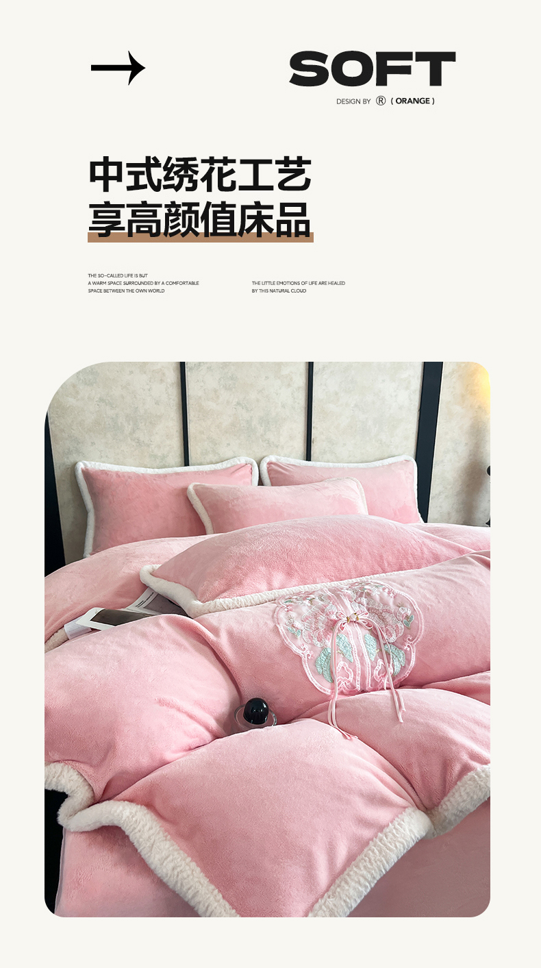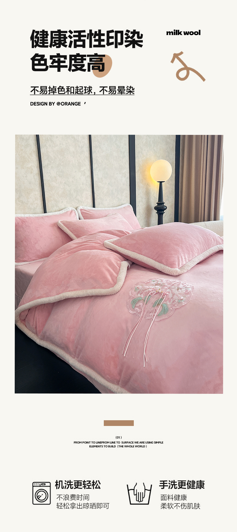 诺梵家纺 2025新款兔毛包边中式绣花四件套-苏颜 苏颜-玉粉