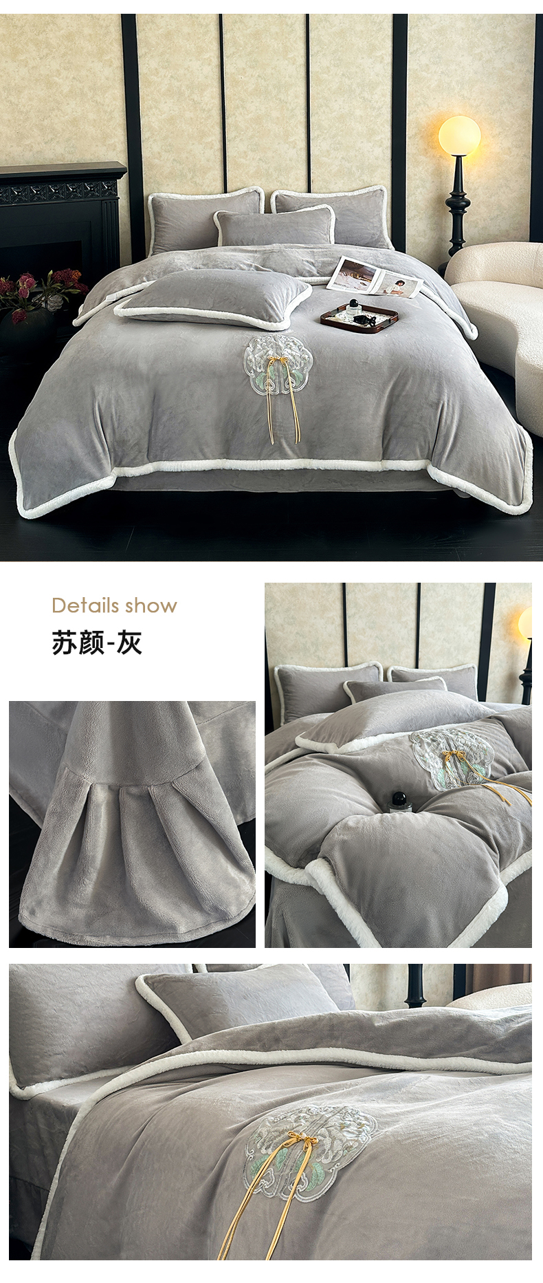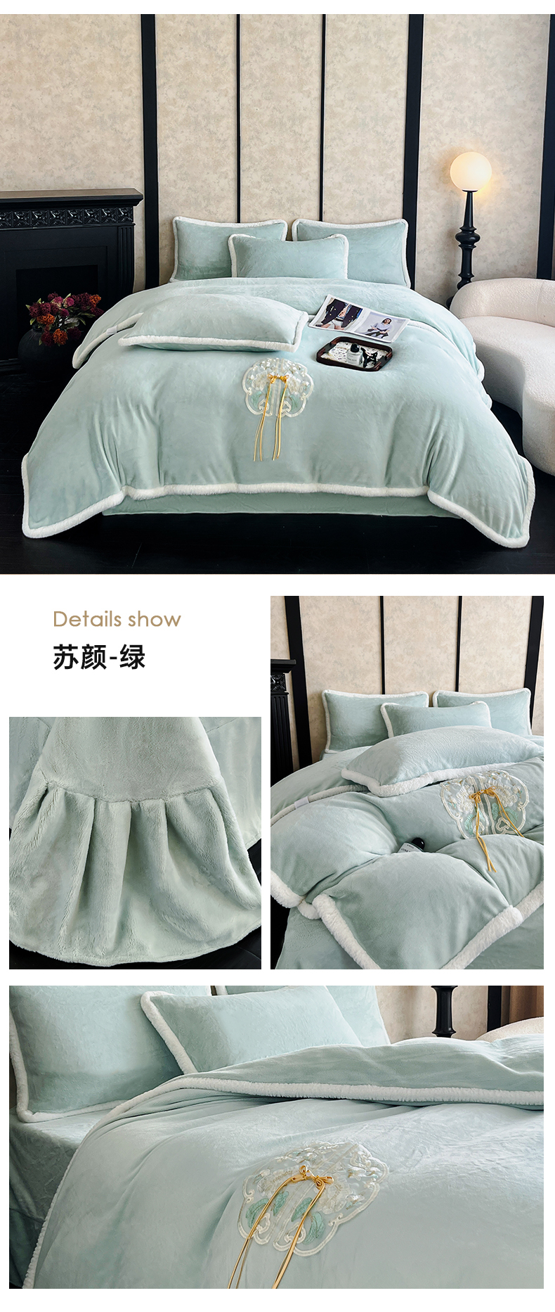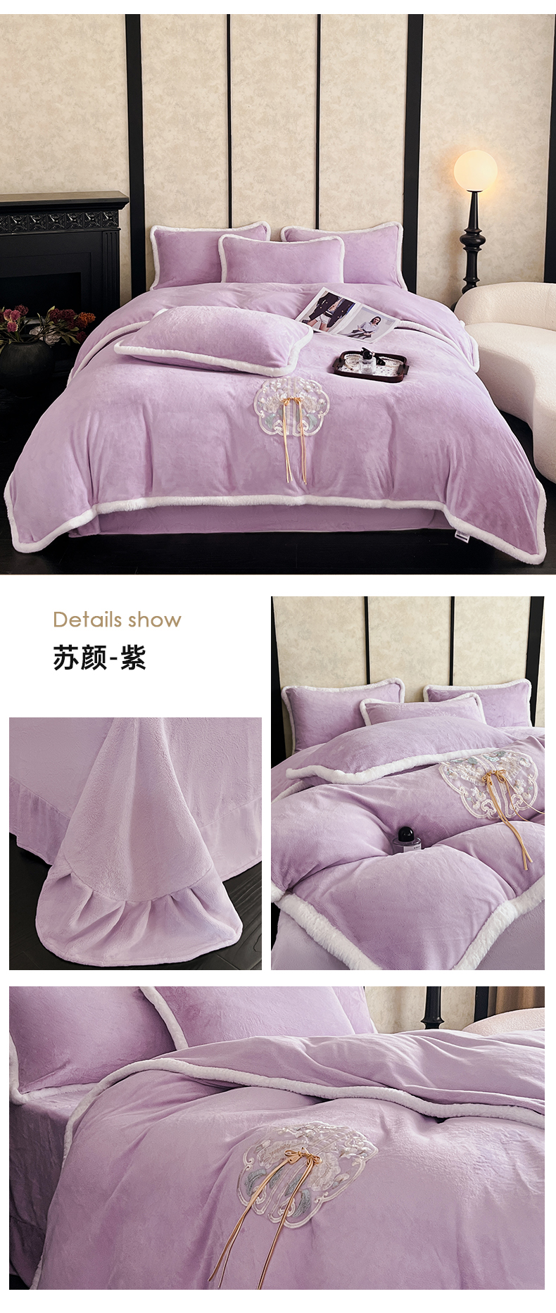 (总)诺梵家纺 2025新款兔毛包边中式绣花四件套-苏颜,苏颜-粉,苏颜-绿,苏颜-紫,苏颜-玉粉,苏颜-米黄,苏颜-灰
