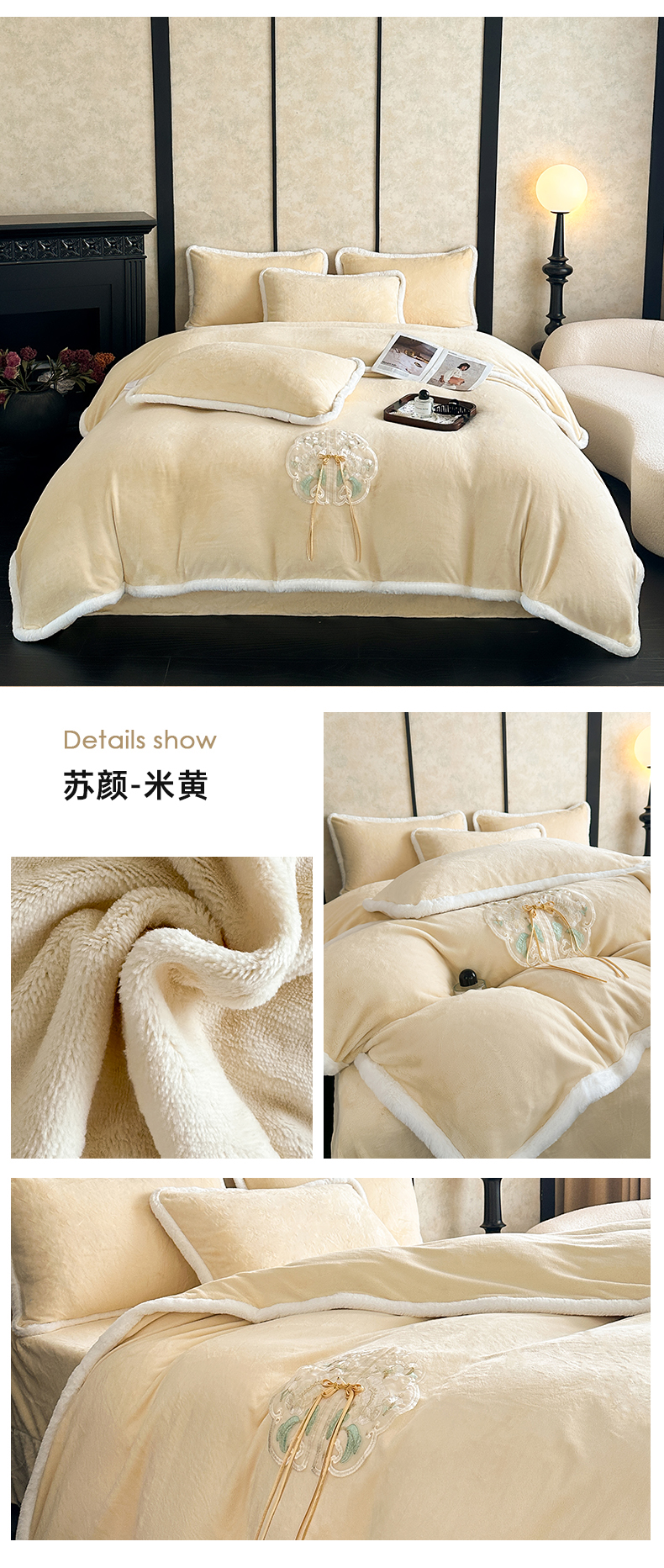 (总)诺梵家纺 2025新款牛奶绒绣花绒四件套,芳华-宝蓝,芳华-豆沙,芳华-湖兰,芳华-米白,芳华-抹茶绿,伊莉莎-米白,伊莉莎-抹茶绿