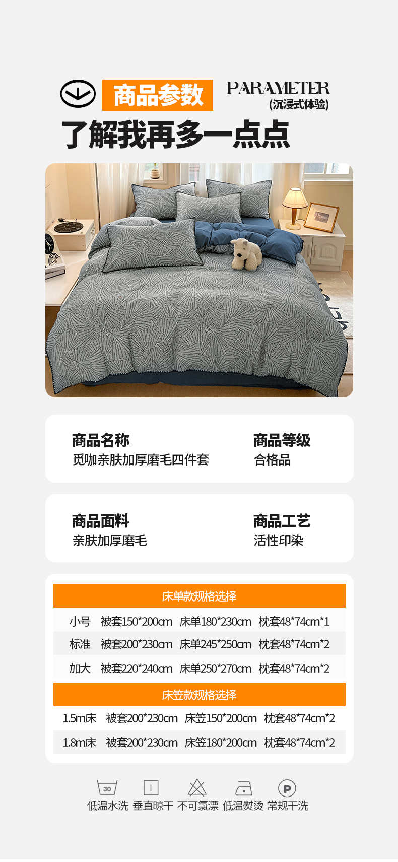 当前位置: 91家纺网 > 商品网购 > 床品套件 > 四件套 > 磨毛活性四件套 > 置顶家纺 2024新款亲肤加厚磨毛四件套-觅咖 觅咖-蓝灰