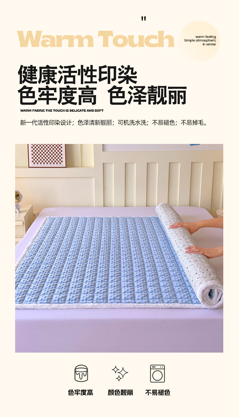 当前位置: 91家纺网 > 商品网购 > 床垫/床褥 > 普通床垫 > 金鑫汇家纺 2025秋冬纯色豆豆绒床褥垫系列-加大床 加大床豆豆绒床褥垫蓝色
