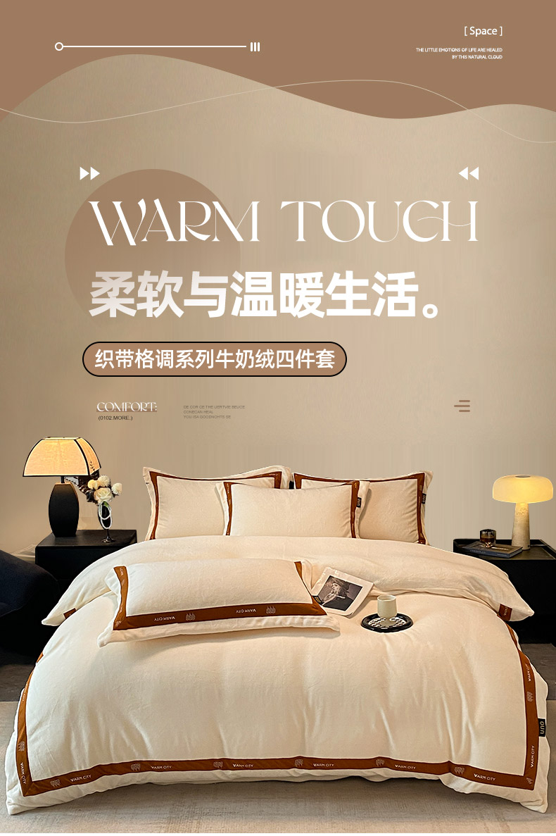 商品名称:吾诺家居 吾诺 2025 织带款牛奶绒四件套 纯色牛奶绒套件 - 格调系列 格调-象牙白