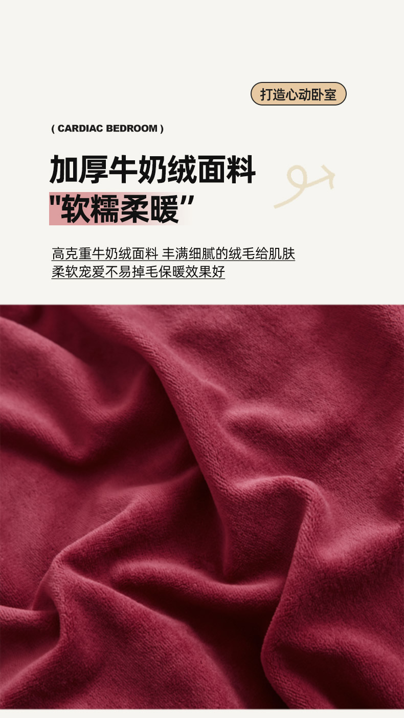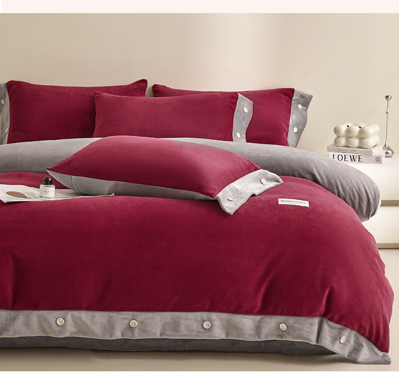 吾诺家居 吾诺 2025 双拼色牛奶绒四件套纽扣四件套钮扣牛奶绒四件套 - 纽扣系列 钮扣-酒红色