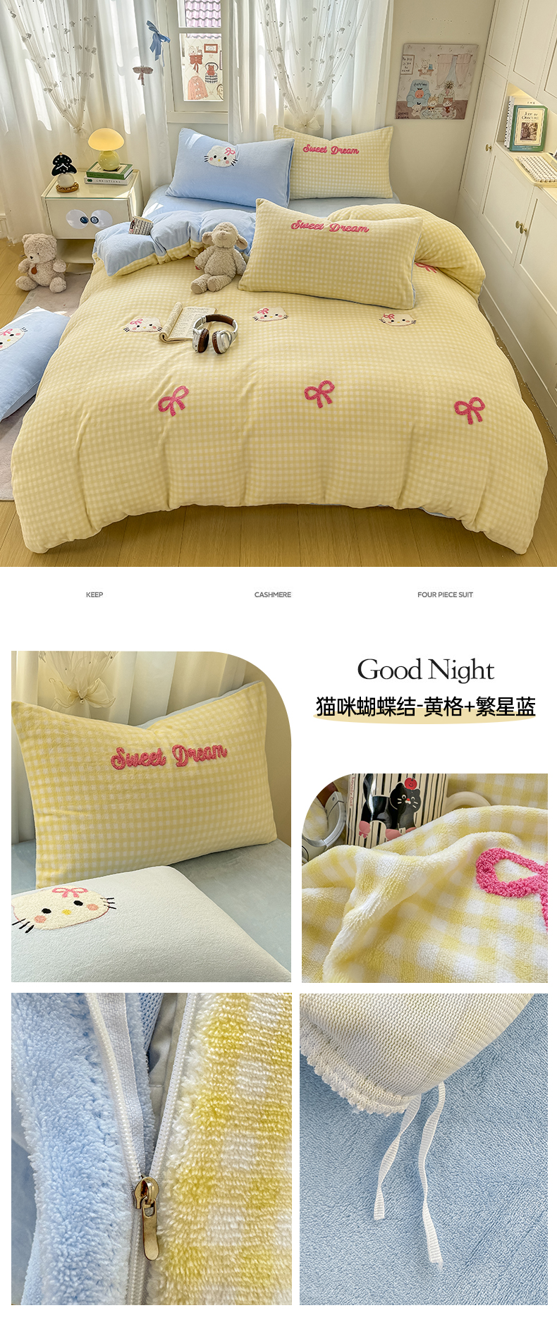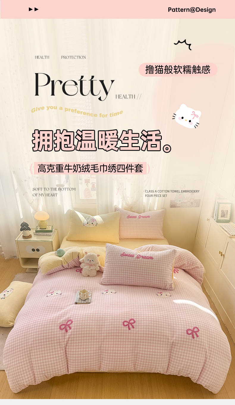 当前位置: 91家纺网 > 商品网购 > 床品套件 > 四件套 > 牛奶绒四件套 > 灰鲸 2025新款牛奶绒毛巾绣套件-猫咪蝴蝶结 猫咪蝴蝶结-粉格+奶油黄