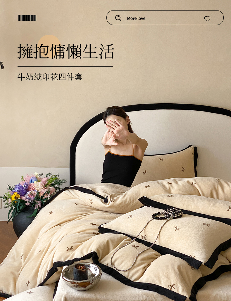 (总)云栖家居 2025秋冬新款加厚印花防静电消光牛奶绒四件套-梦境,梦境-白,梦境-粉,梦境-咖