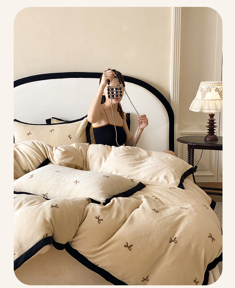 (总)云栖家居 2025秋冬新款加厚纯色刺绣牛奶绒四件套-福蝶多多,福蝶多多-粉,福蝶多多-紫