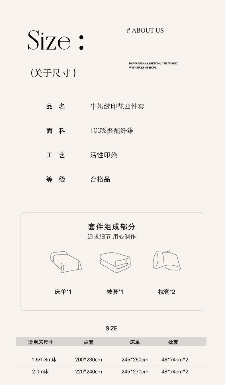 商品名称:云栖家居 2025秋冬新款加厚印花防静电消光牛奶绒四件套-梦境 梦境-咖