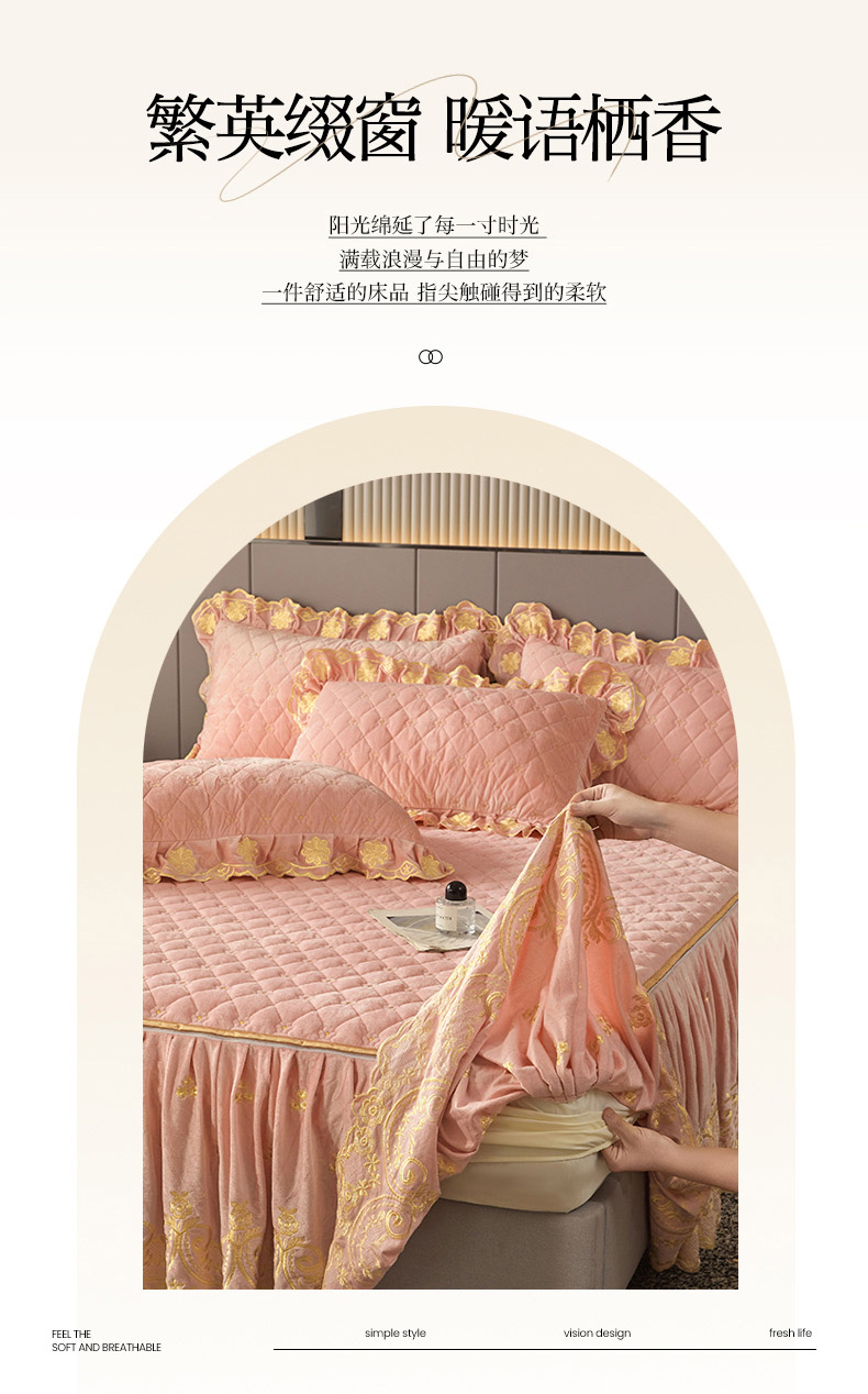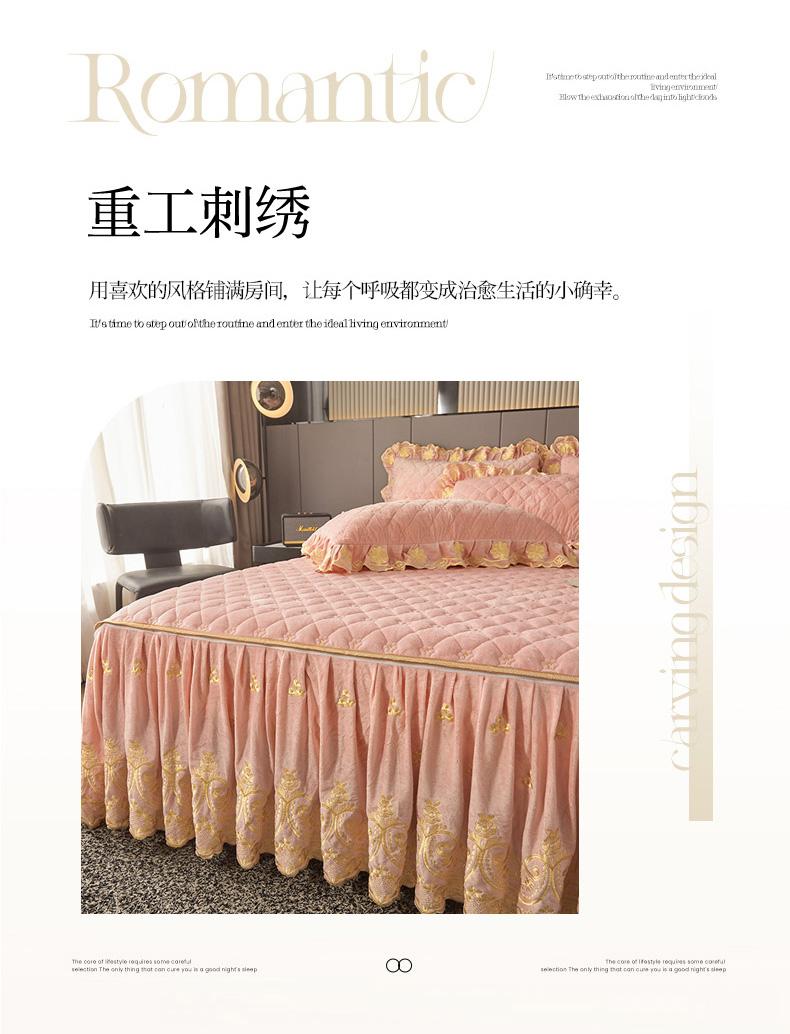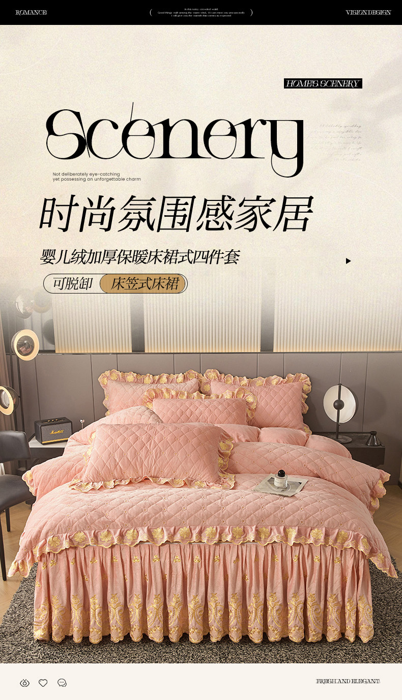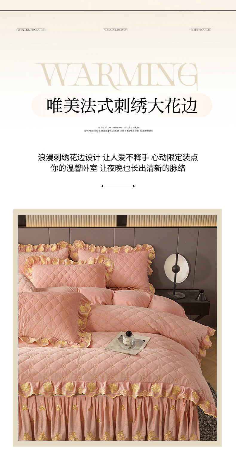 当前位置: 91家纺网 > 商品网购 > 床品套件 > 四件套 > 其它四件套 > 罗艺轩 2025新款婴儿绒加厚保暖床裙式四件套-心语 心语-梦幻玉
