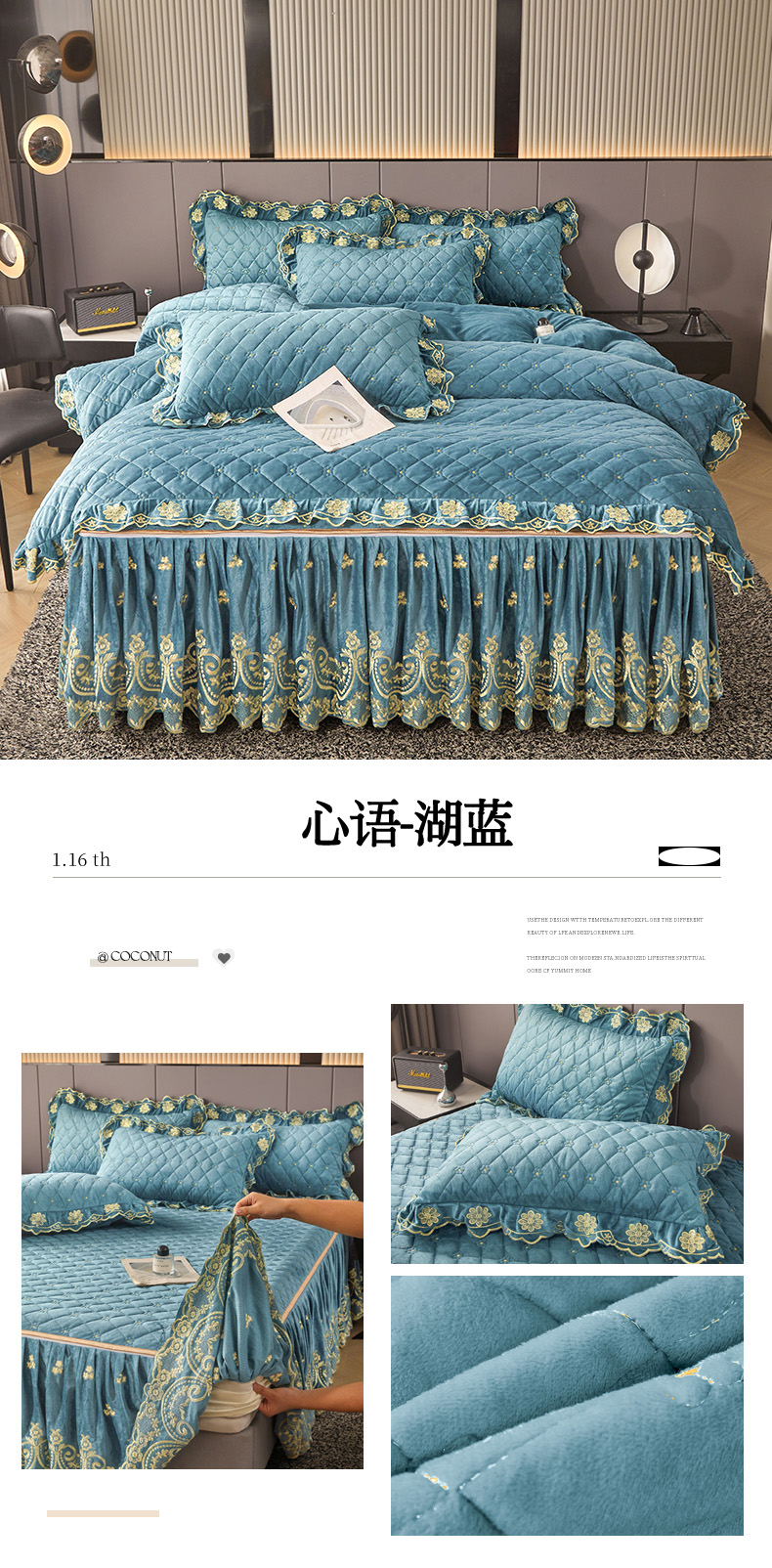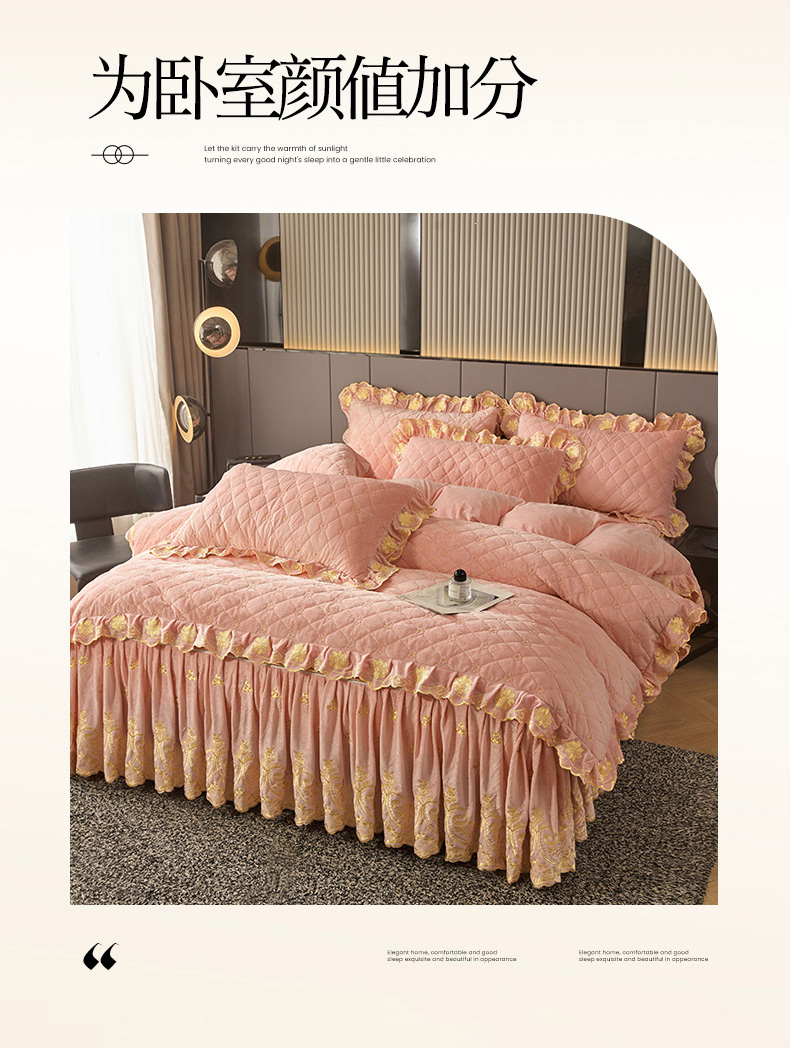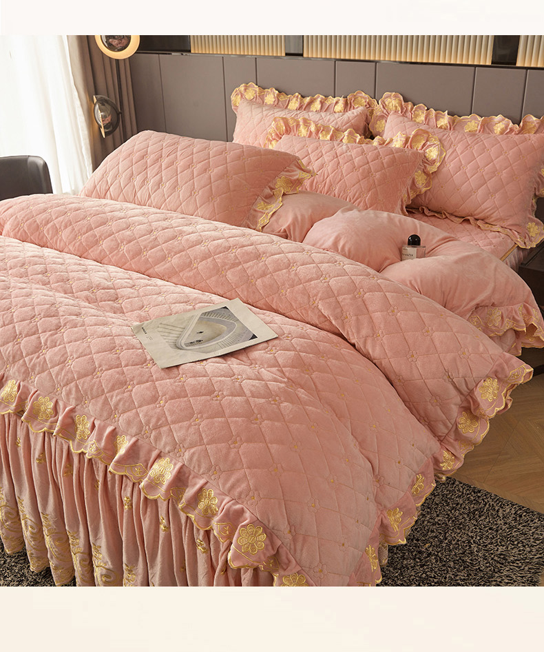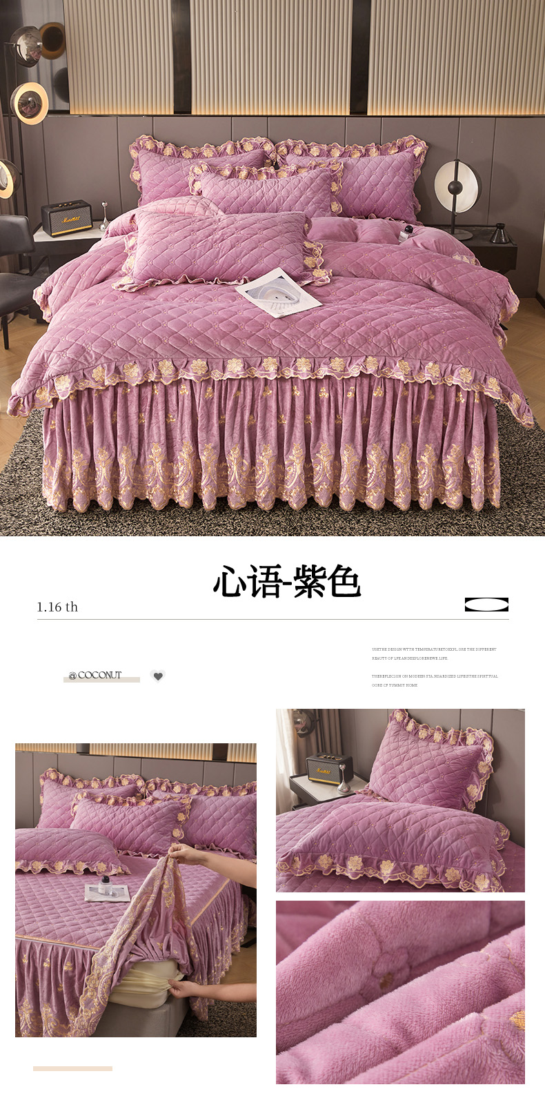 当前位置: 91家纺网 > 商品网购 > 床品套件 > 四件套 > 其它四件套 > 罗艺轩 2025新款婴儿绒加厚保暖床裙式四件套-心语 心语-梦幻玉
