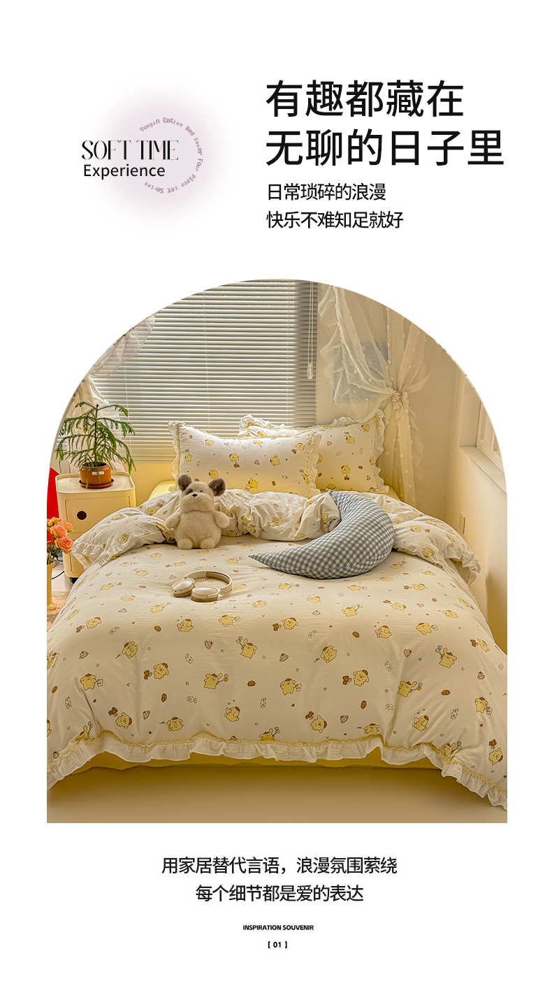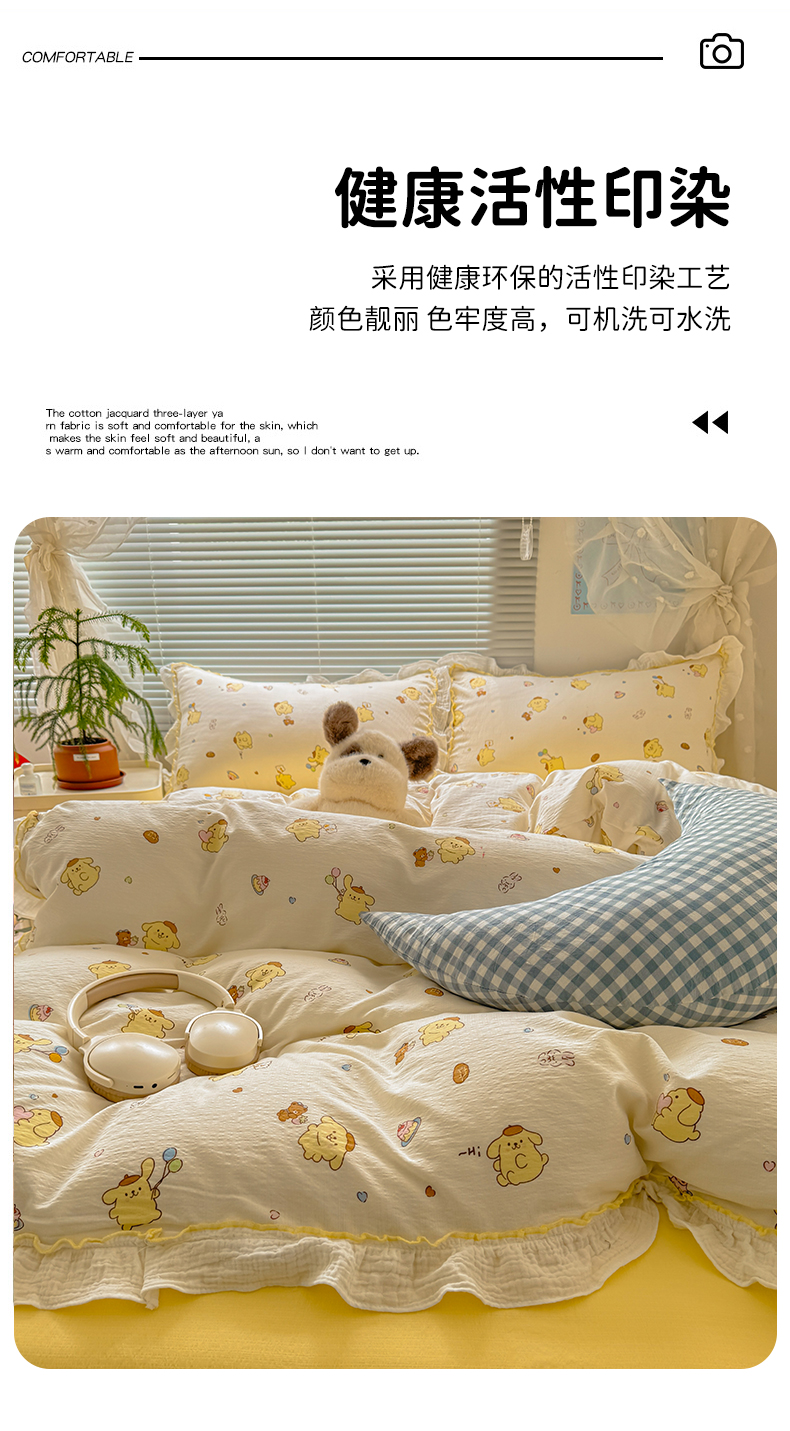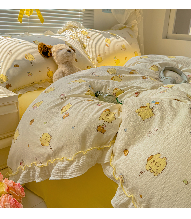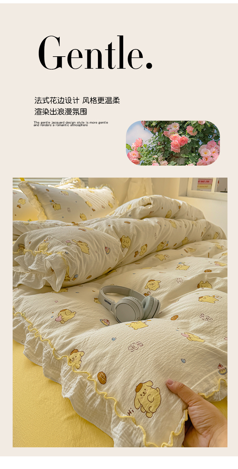 当前位置: 91家纺网 > 商品网购 > 床品套件 > 四件套 > 其它四件套 > 繁花家居 2025新款高弹线云感木棉多层纱花边超软四件套 小狗布丁