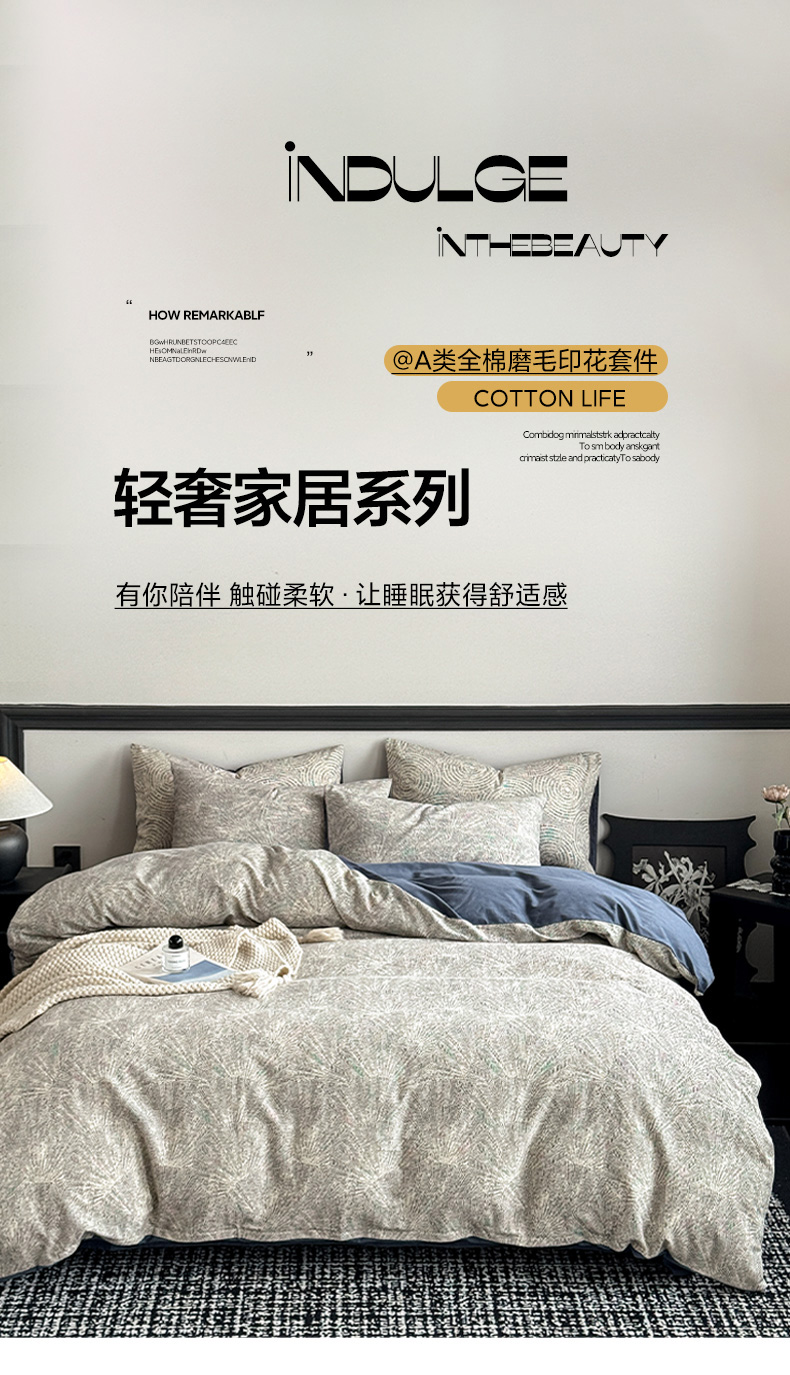 商品名称:红淳家纺 2025新款全棉加厚磨毛四件套 韵律-蓝
