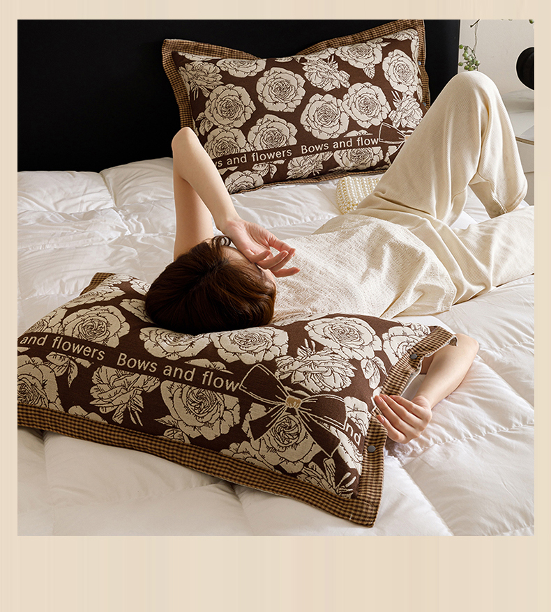 (总)悦然毛巾被 2025新款全棉四层提花纱布美拉德凤格枕套,花蝶红,花蝶咖,花蝶蓝,蔓叶咖,蔓叶蓝,蔓叶棕,玫瑰格调咖,玫瑰格调棕,素布花灰,素布花蓝,野韵,野韵棕,组合