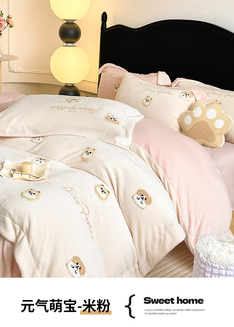 当前位置: 91家纺网 > 商品网购 > 床品套件 > 四件套 > 牛奶绒四件套 > 2025新款A类双面加厚保暖加绒宝宝绒刺绣被套床单卡通可爱床上用品牛奶绒四件套-元气萌宝 元气萌宝-米蓝