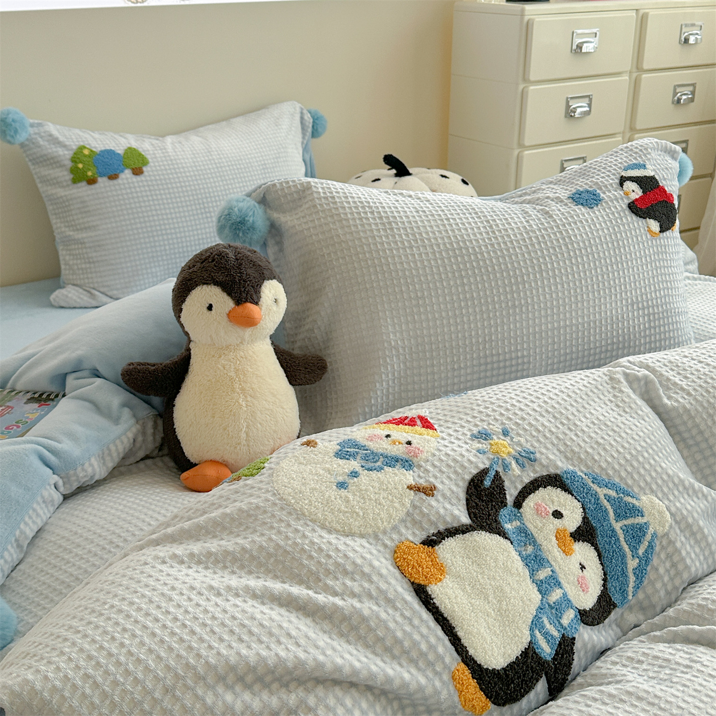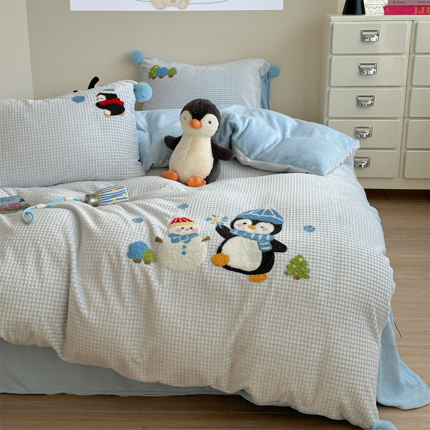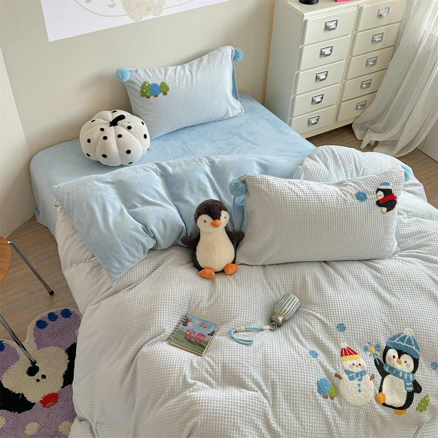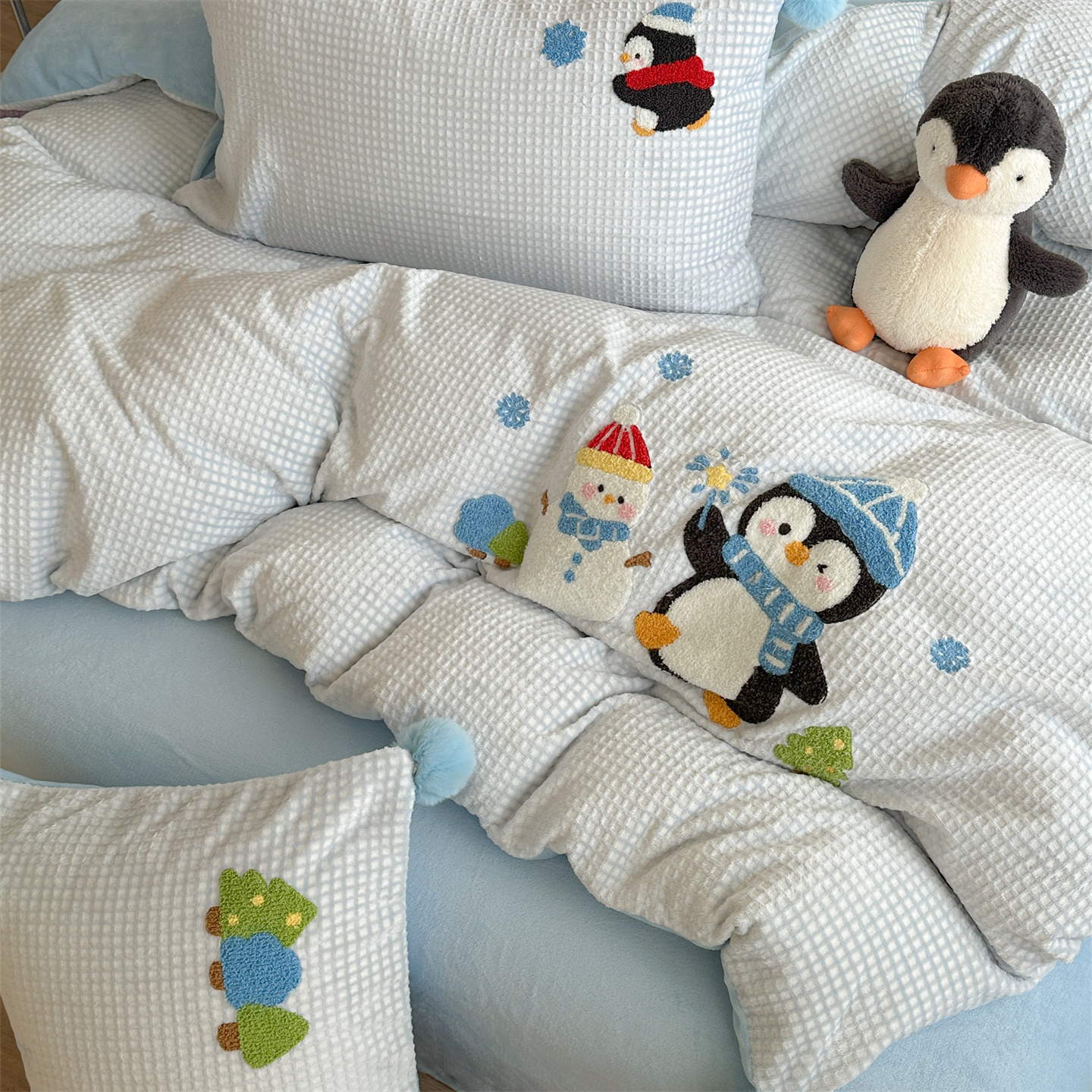 柚子YOUTH 2025新款华夫格提花绒刺绣四件套 冰雪世界