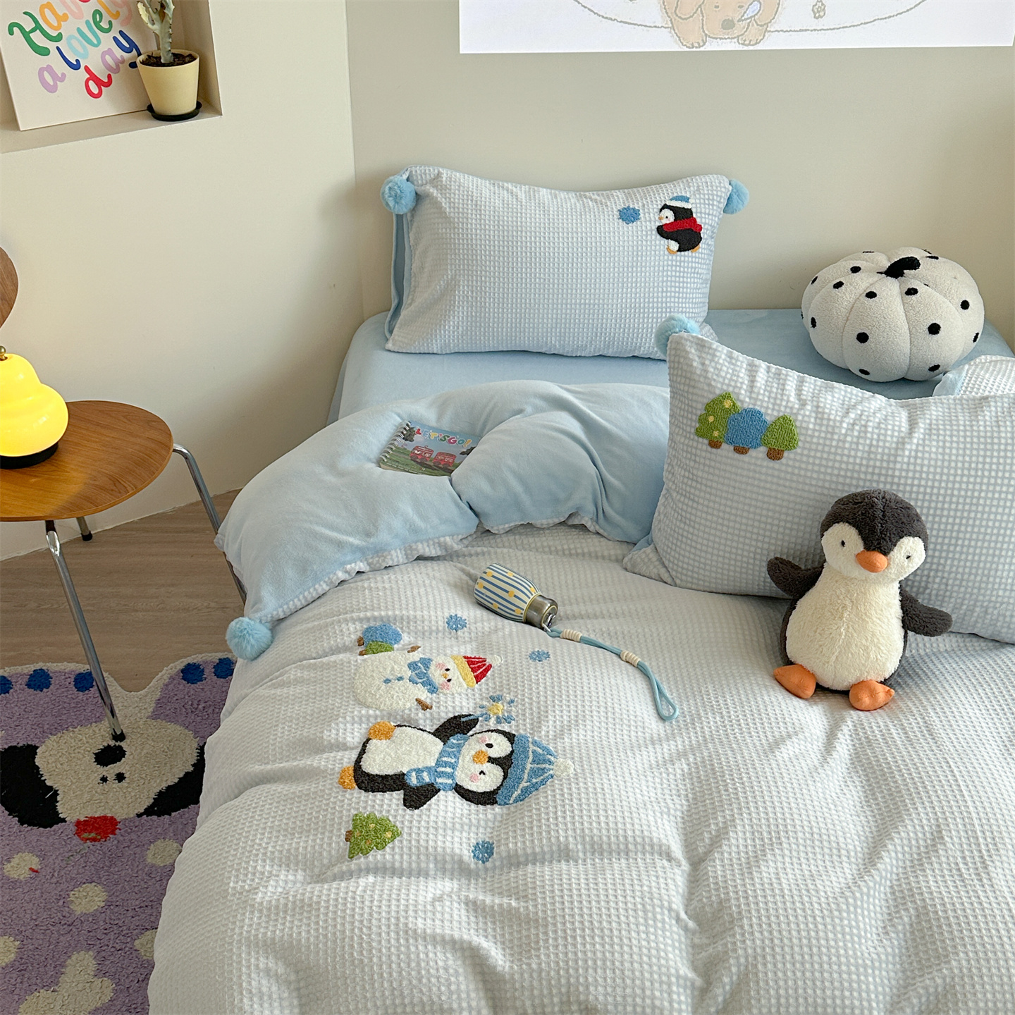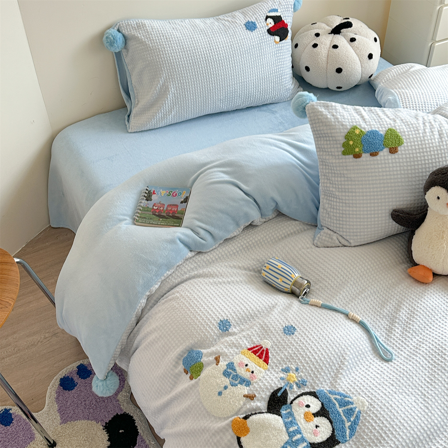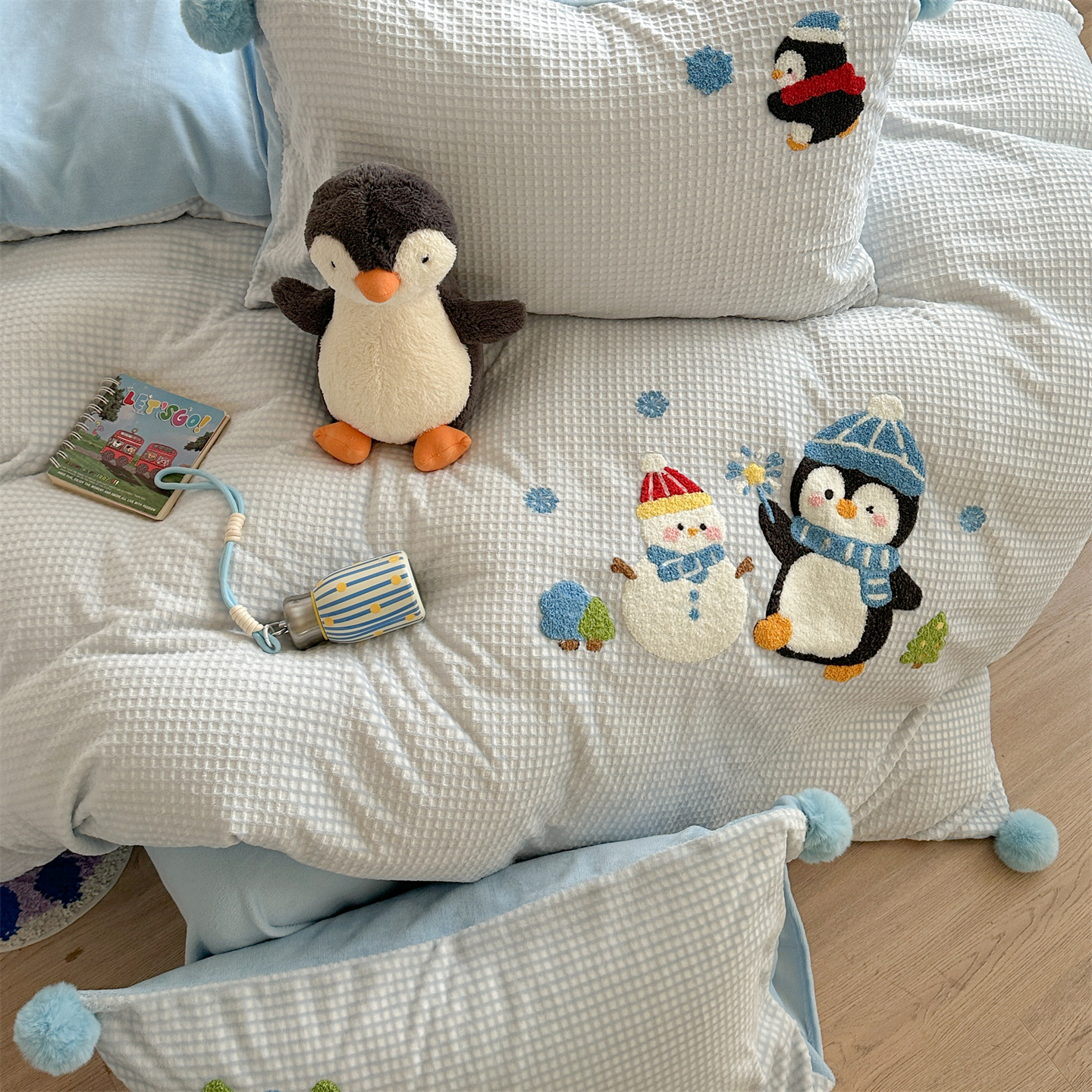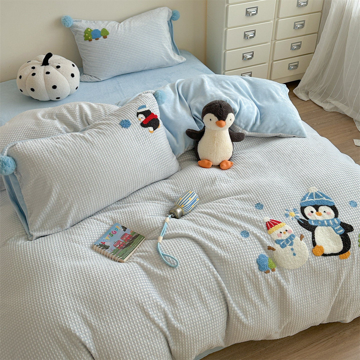 柚子YOUTH 2025新款华夫格提花绒刺绣四件套 冰雪世界
