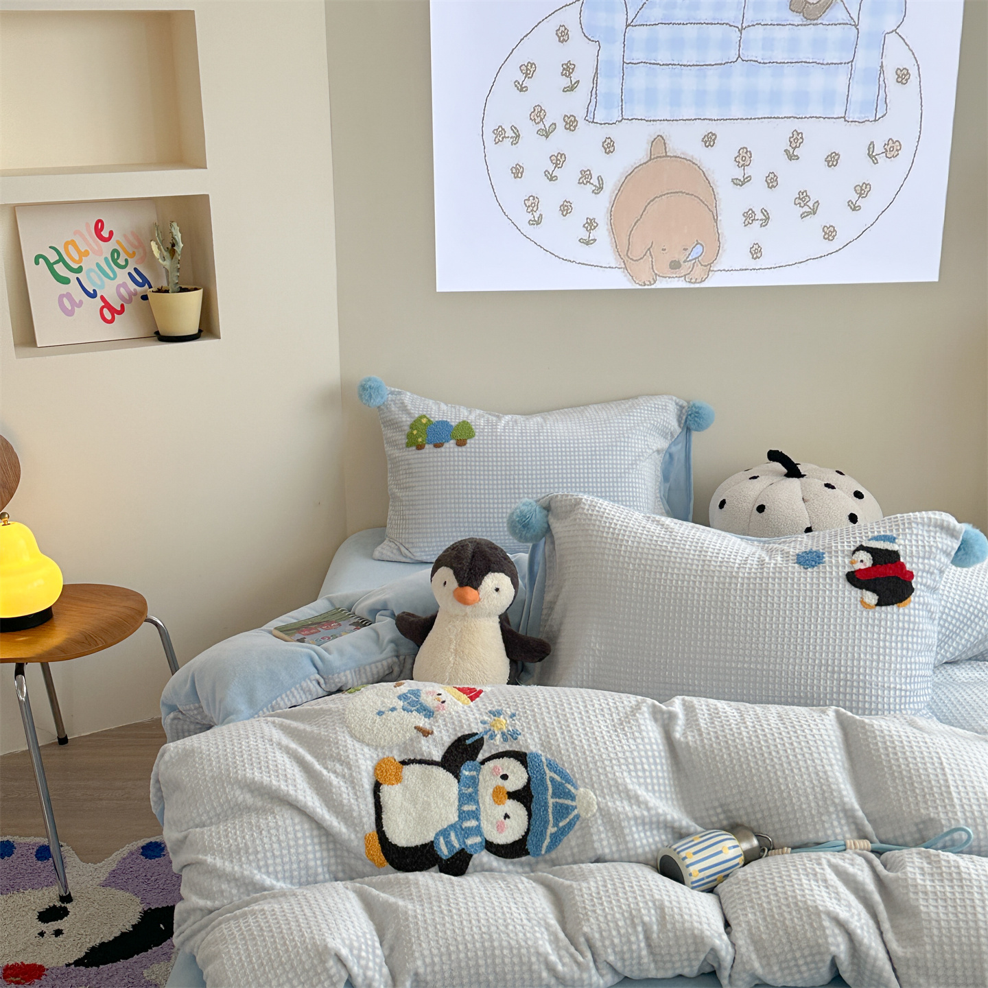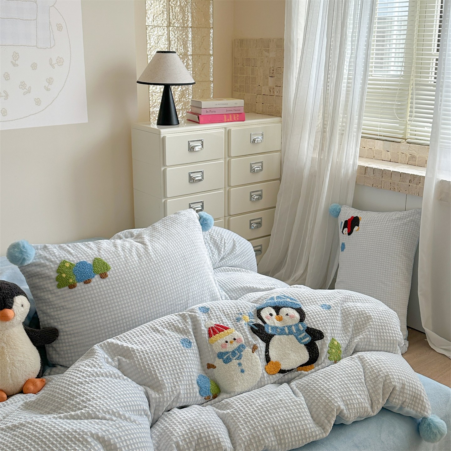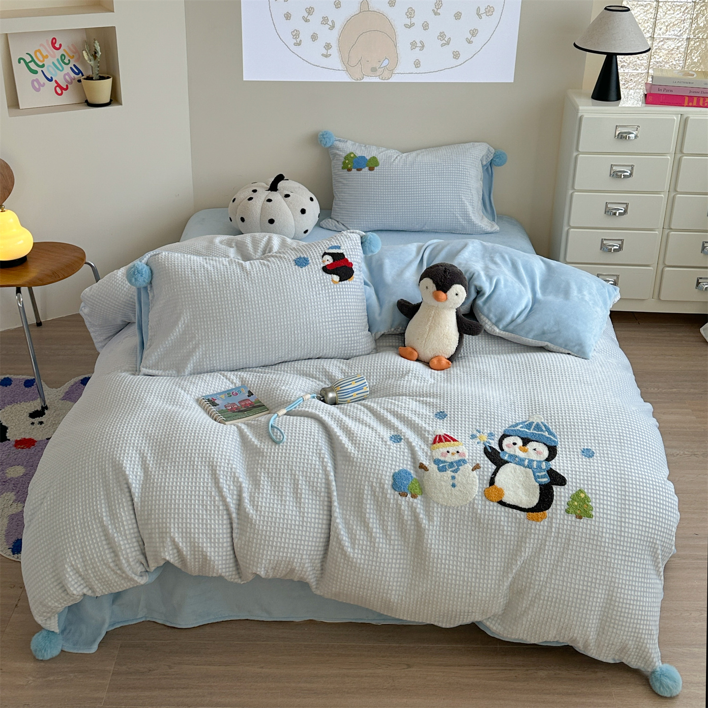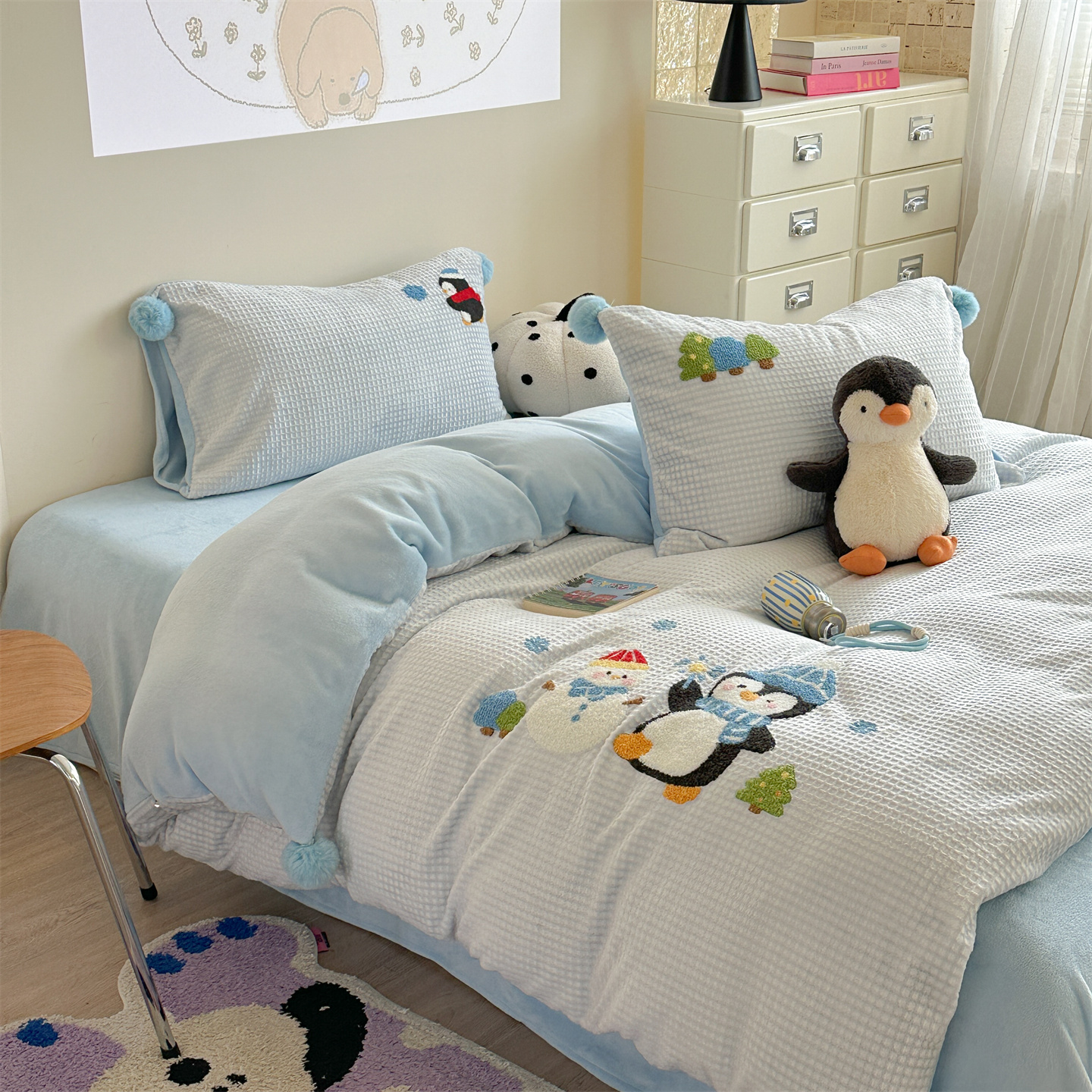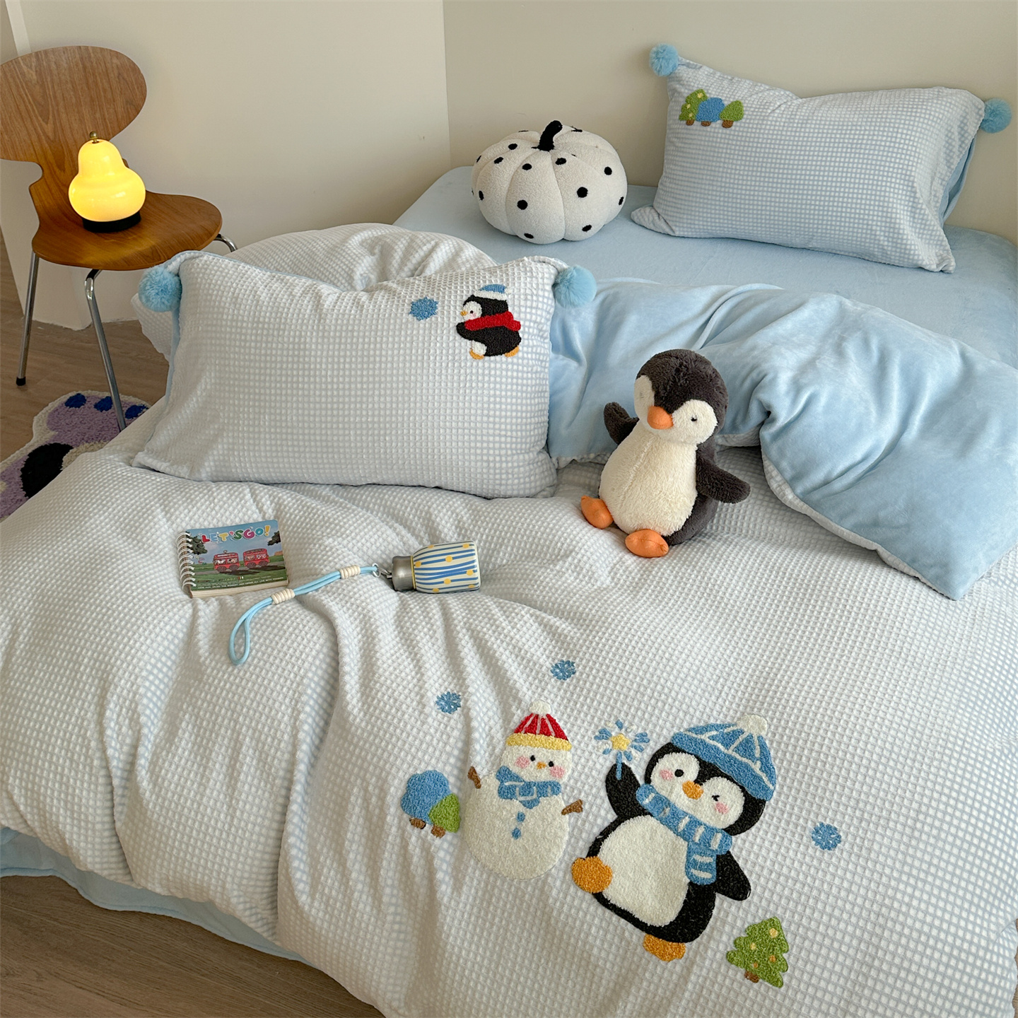柚子YOUTH 2025新款华夫格提花绒刺绣四件套 冰雪世界