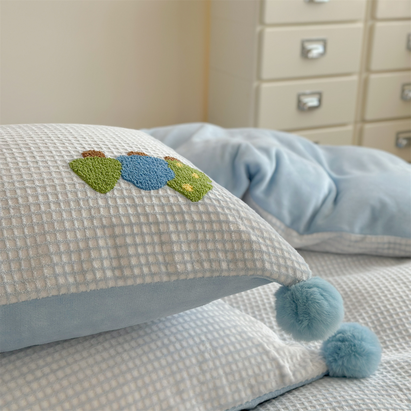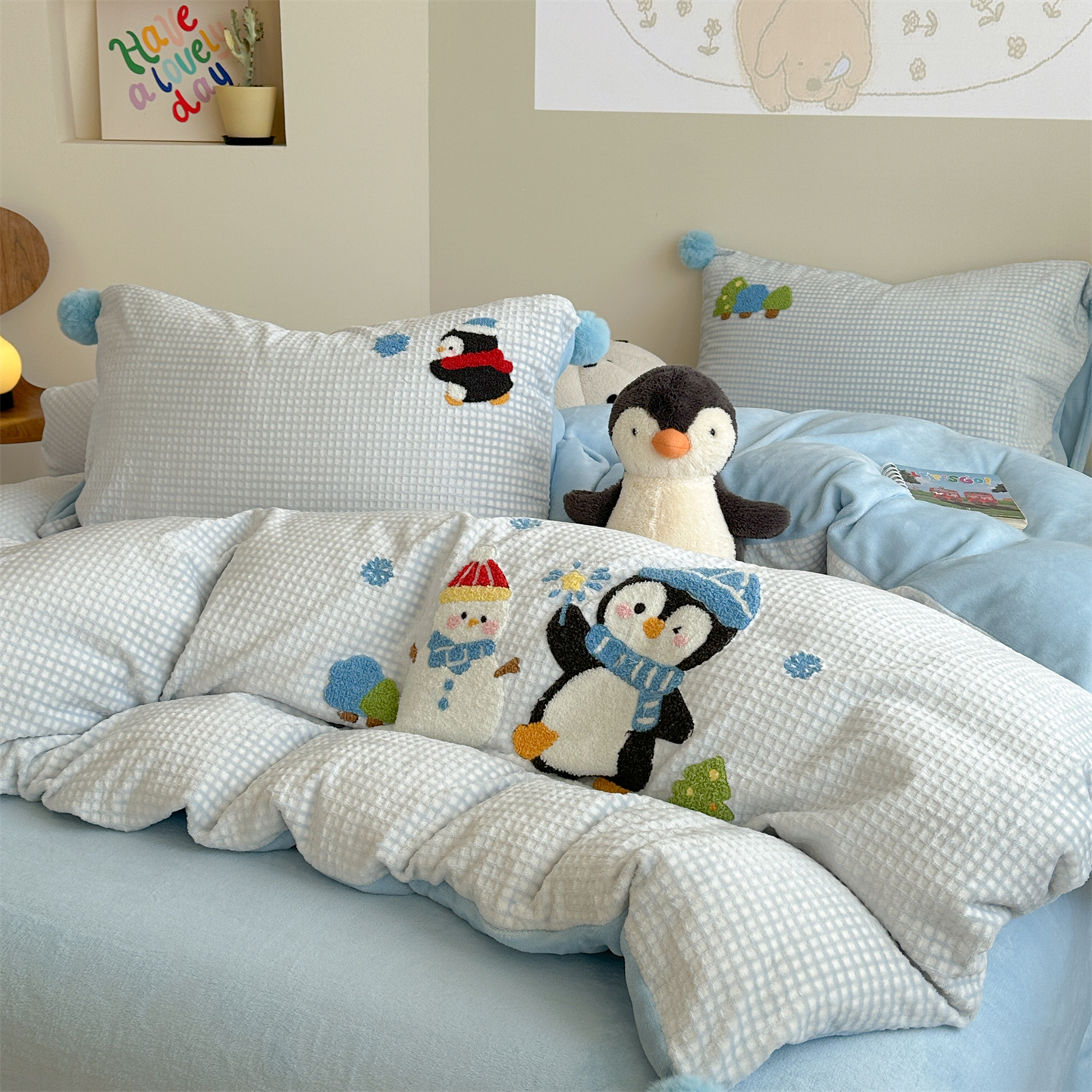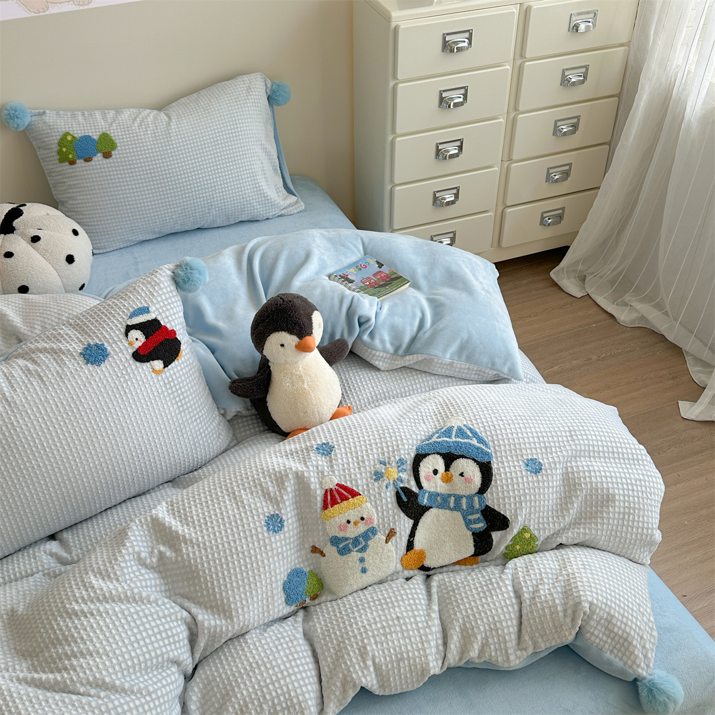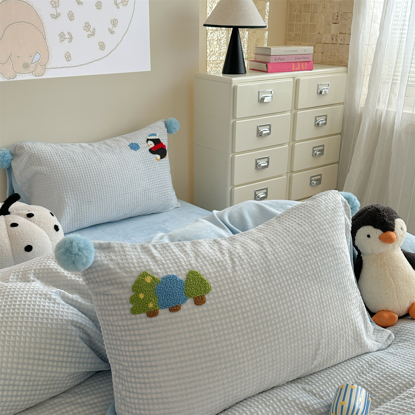 柚子YOUTH 2025新款华夫格提花绒刺绣四件套 冰雪世界