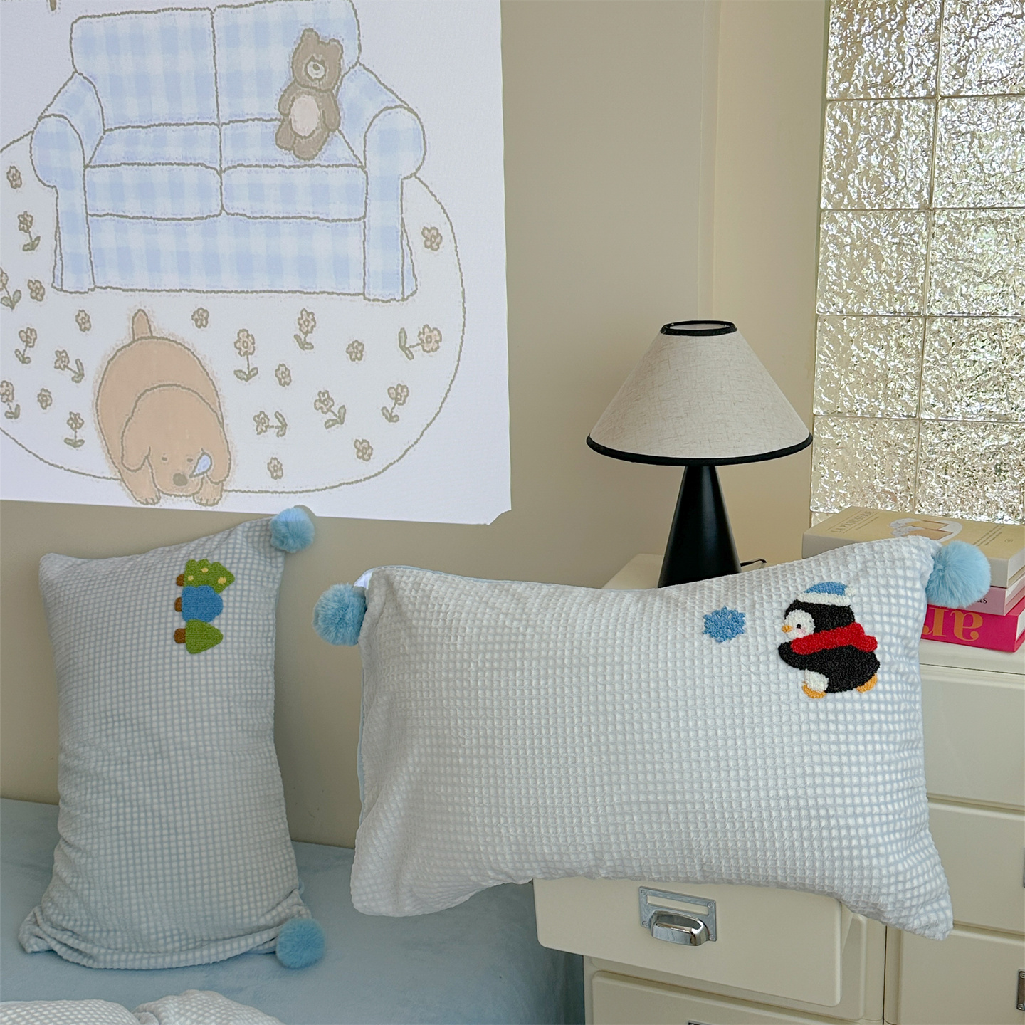 (总)柚子YOUTH 2025新款双面泰迪绒毛巾绣四件套,甜甜圈,快乐企鹅,森林聚会,甜酷KT,小茄子,雪人王国