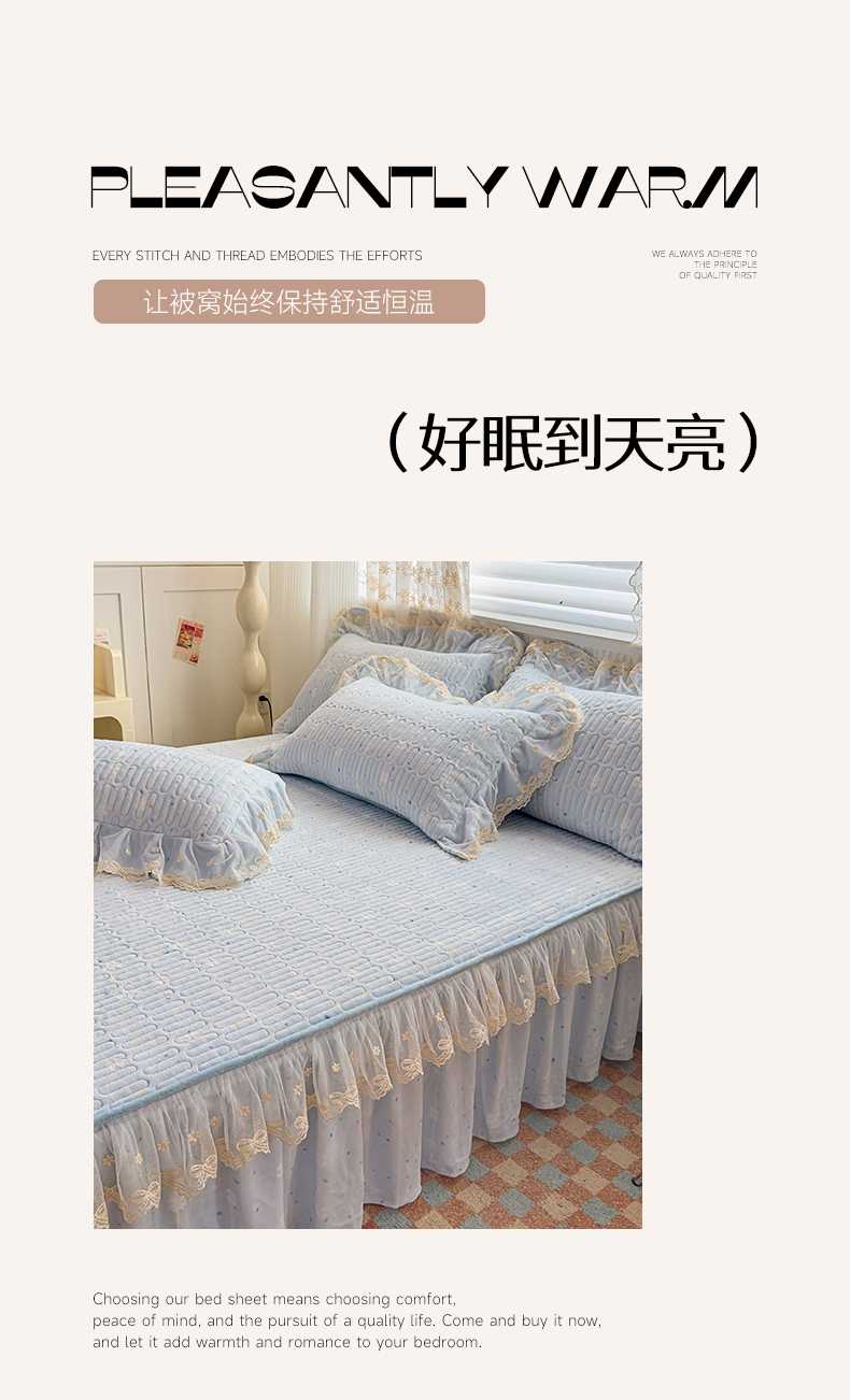 (总)家之硕家纺 2025新款立体雕花可拆洗牛奶绒单床裙系列,爱莎粉,安妮绿,彩虹糖-浅蓝,花韵,秘密花园,田园生活