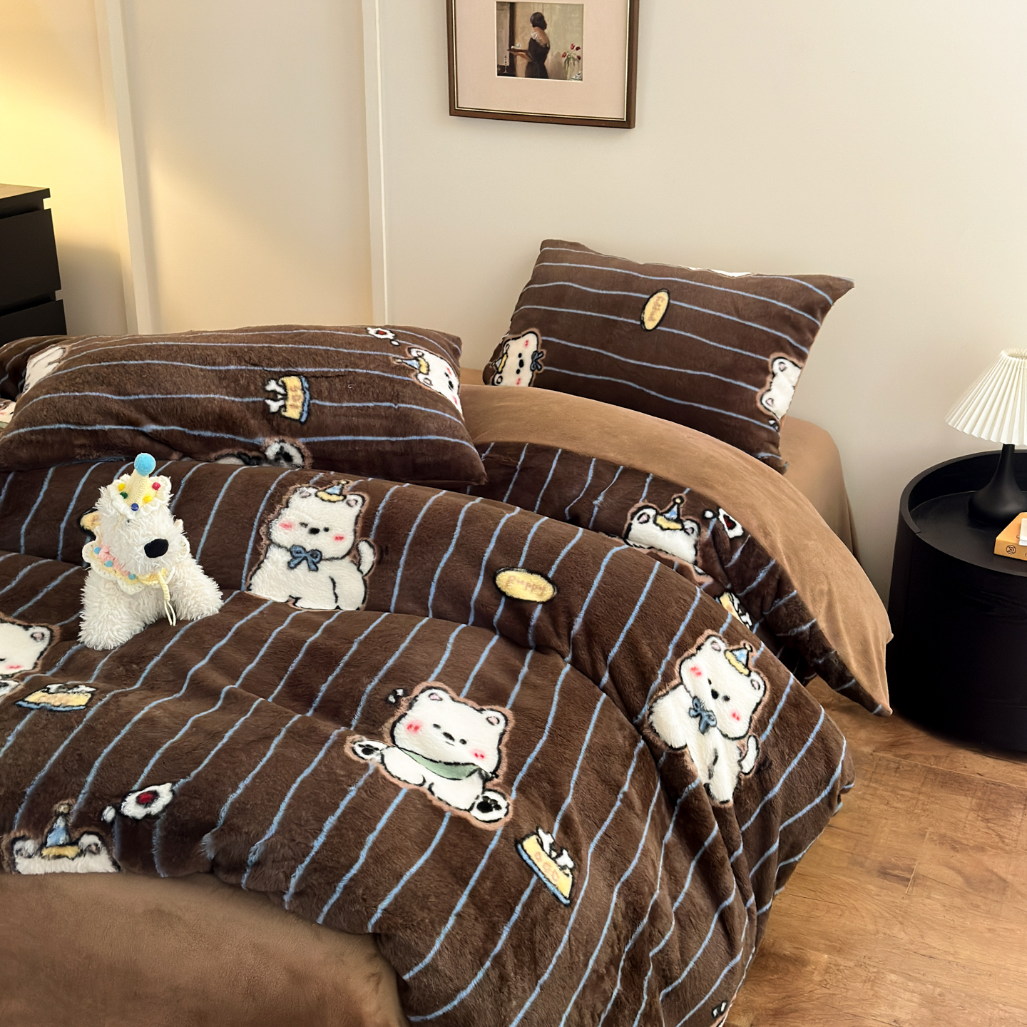 (总)乐童家纺 2025新款高克重兔毛牛奶绒四件套,兔毛豹纹咖,兔毛西高地,兔毛彩虹KT