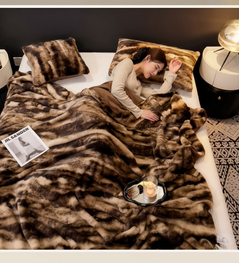 (总)九花鹿 2025新款丹麦皮草绒水貂绒盖毯毛毯毯子-豹纹,豹纹粉,豹纹灰,豹纹咖