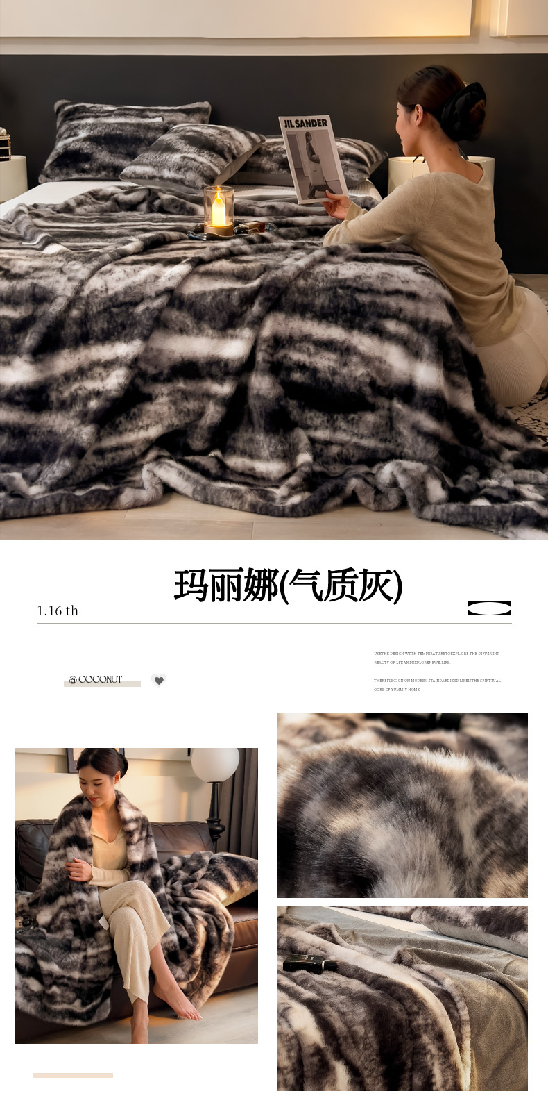 商品名称:九花鹿 2025新款丹麦皮草绒水貂绒盖毯毛毯毯子 玛丽娜-气质灰