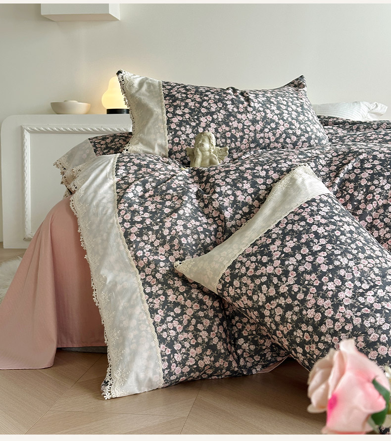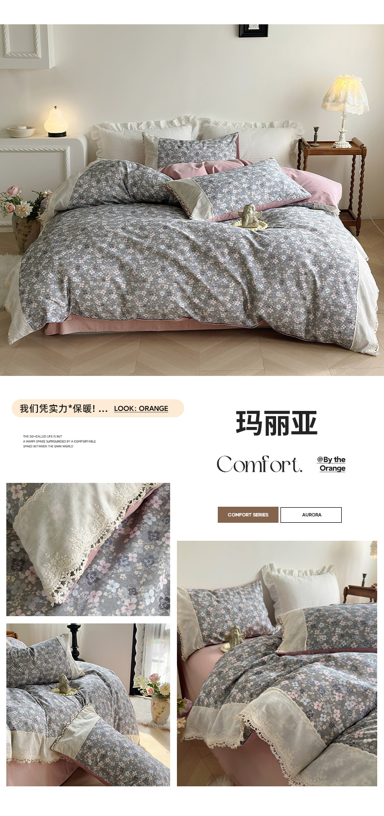 当前位置: 91家纺网 > 商品网购 > 床品套件 > 四件套 > 全棉普通四件套 > 怡家居 2025新款全棉纯棉磨毛数码印花韩系花边四件套 兰序