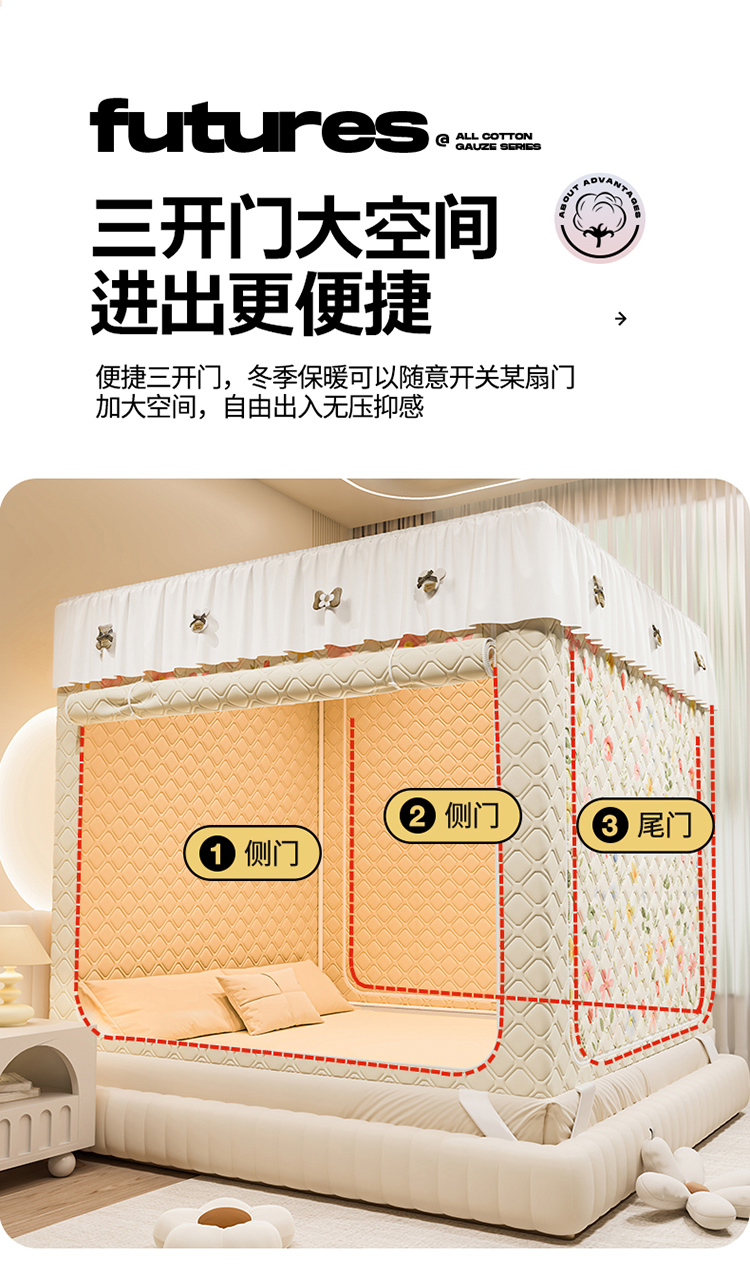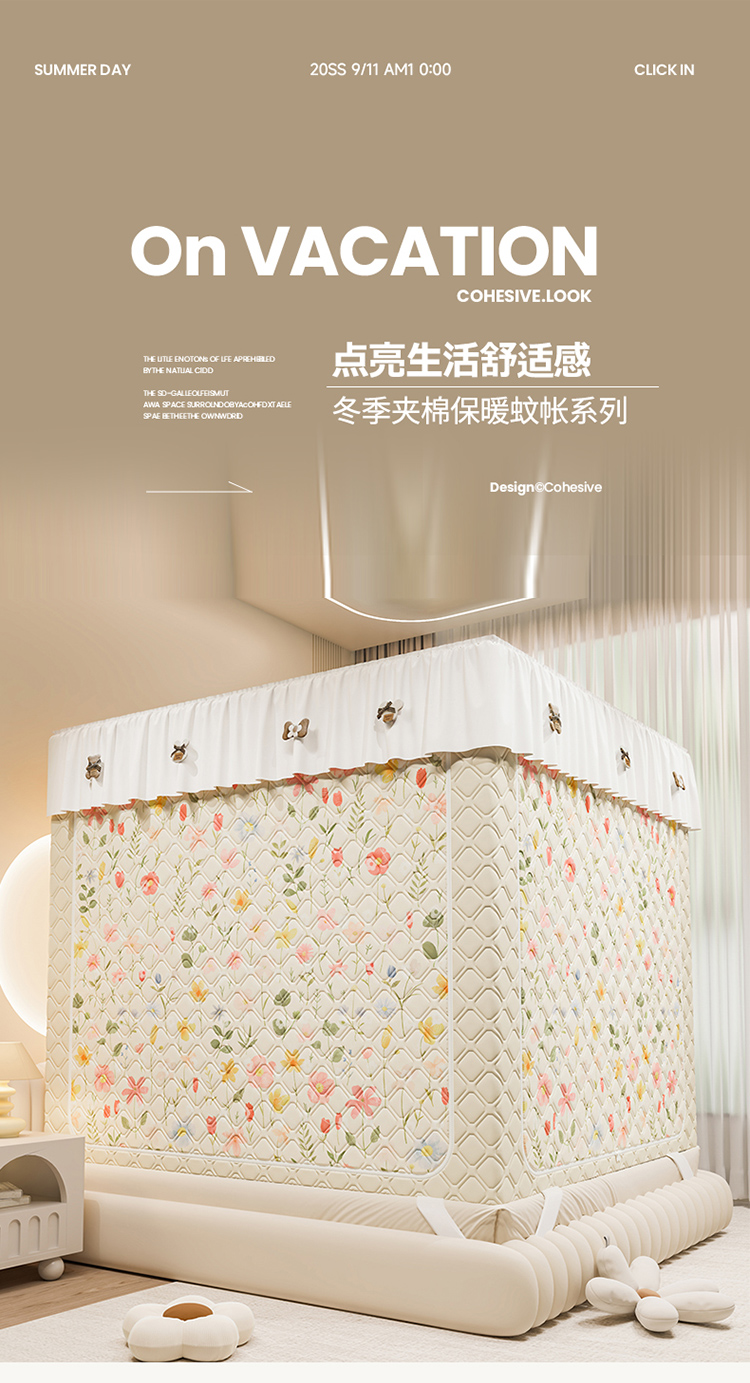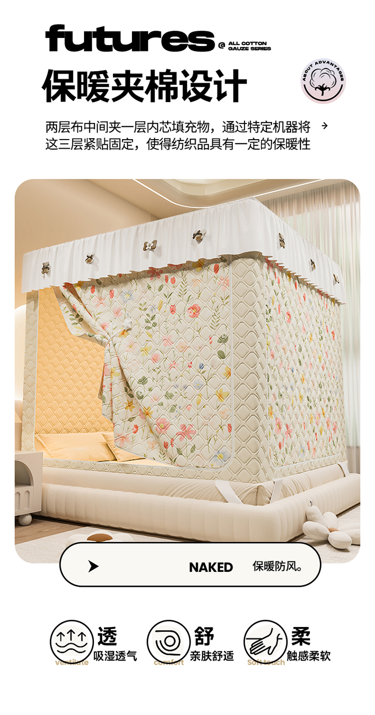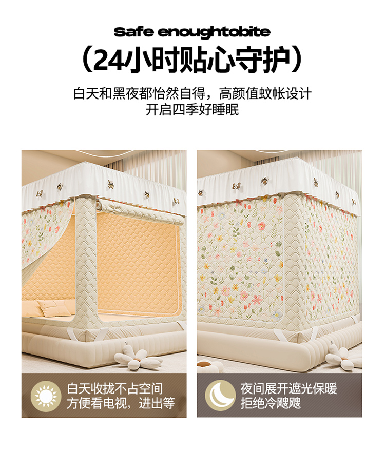 商品名称:(总)2025新款夹棉保暖蚊帐一体式碎花清新