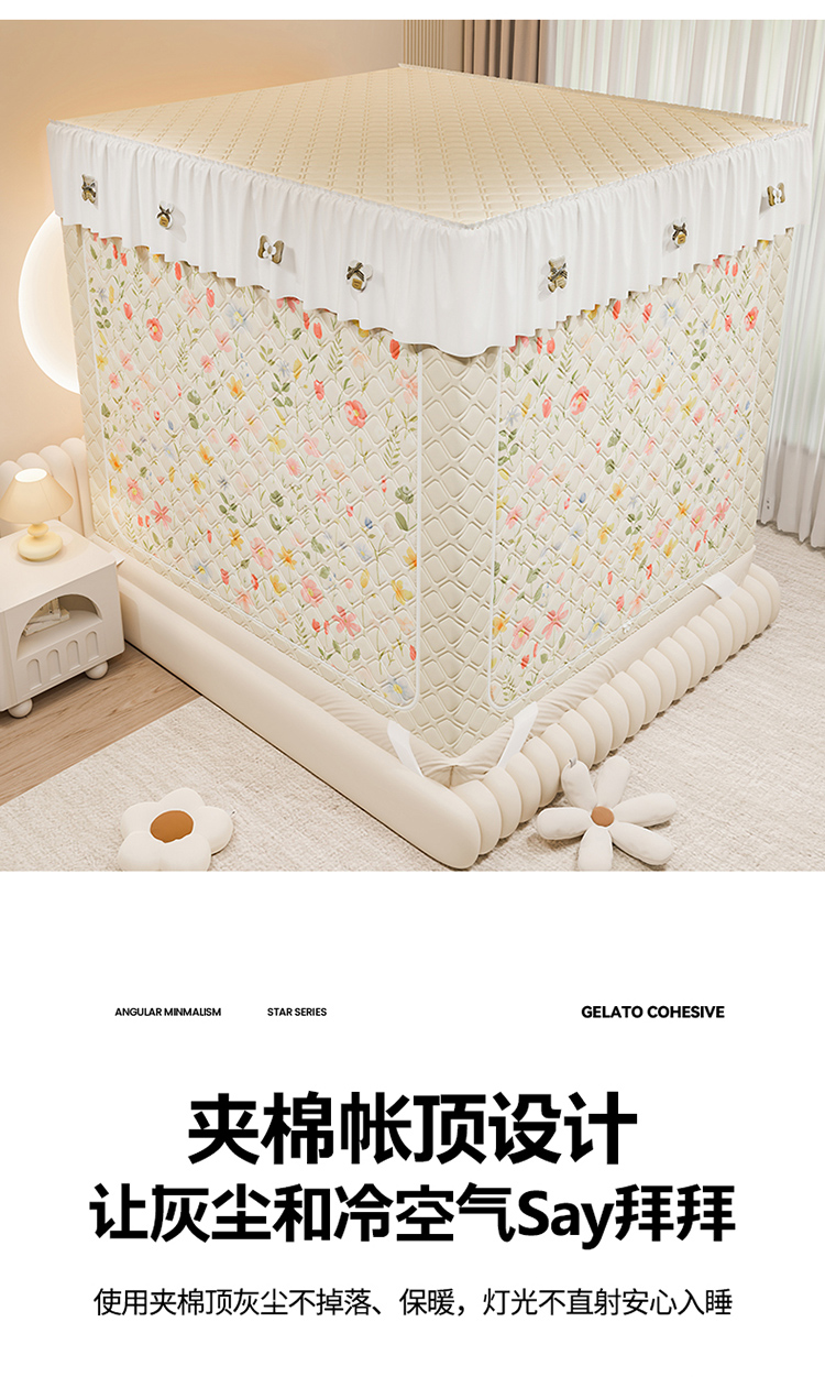 (总)2025新款夹棉保暖蚊帐一体式碎花清新