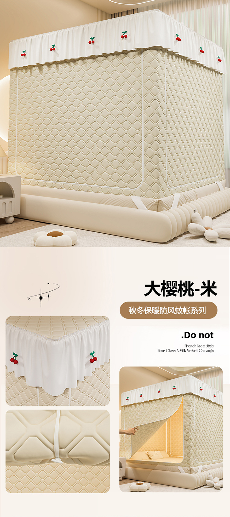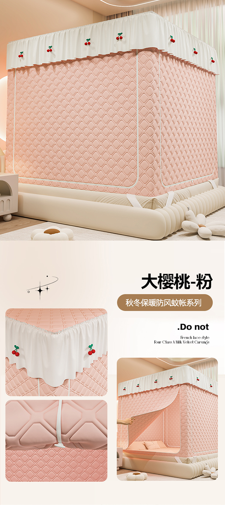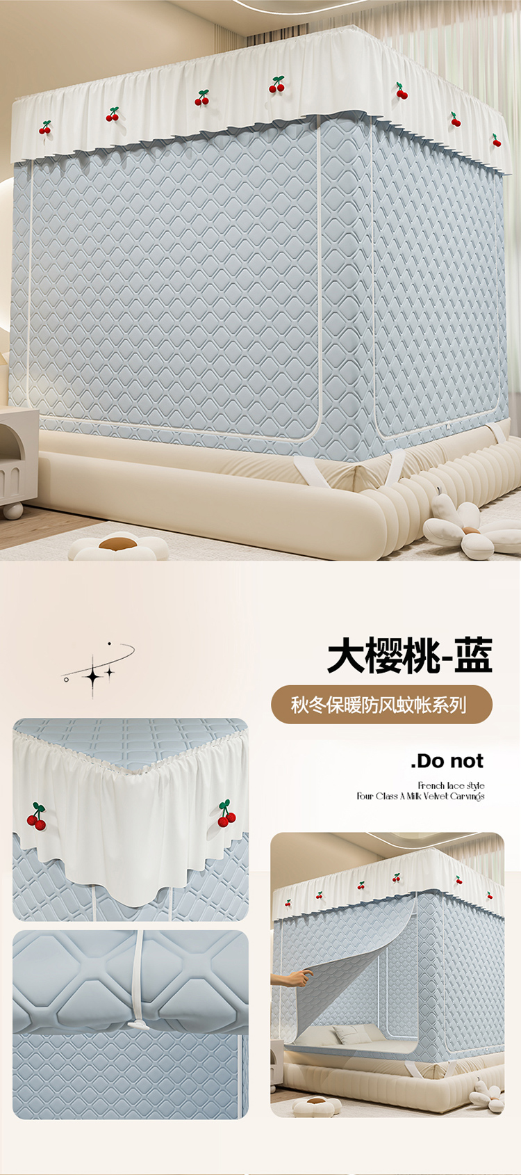 (总)2025新款夹棉保暖蚊帐一体式碎花清新,大樱桃-粉,大樱桃-蓝,大樱桃-米,花朵猫咪,碎花-蓝,碎花-米,兔兔和蝴蝶结,仙草兔