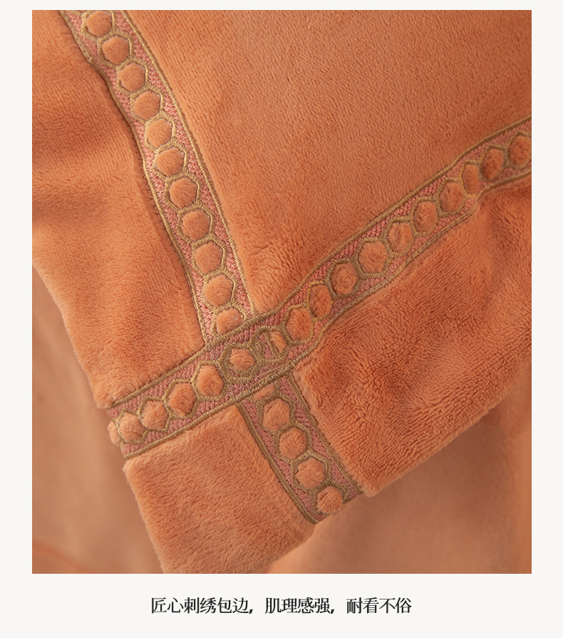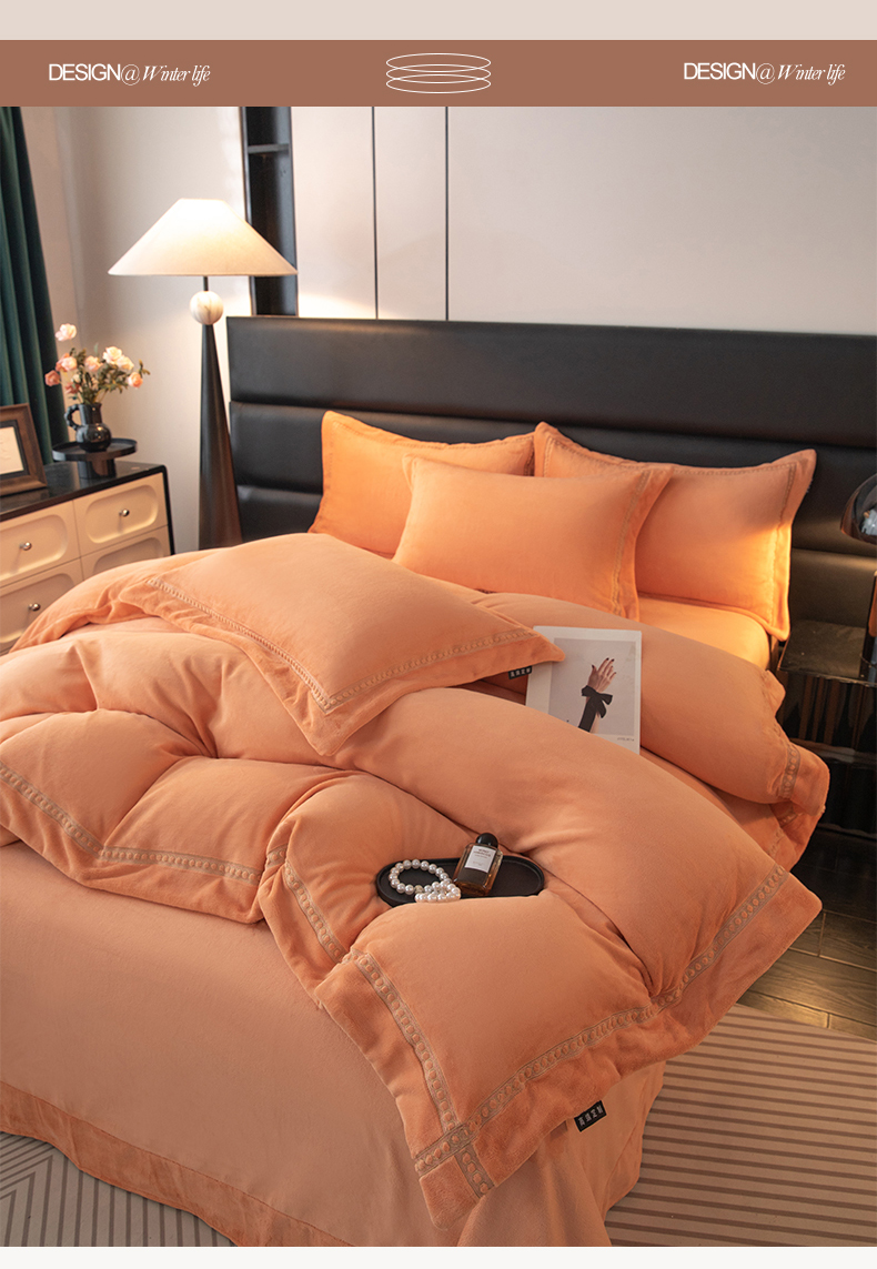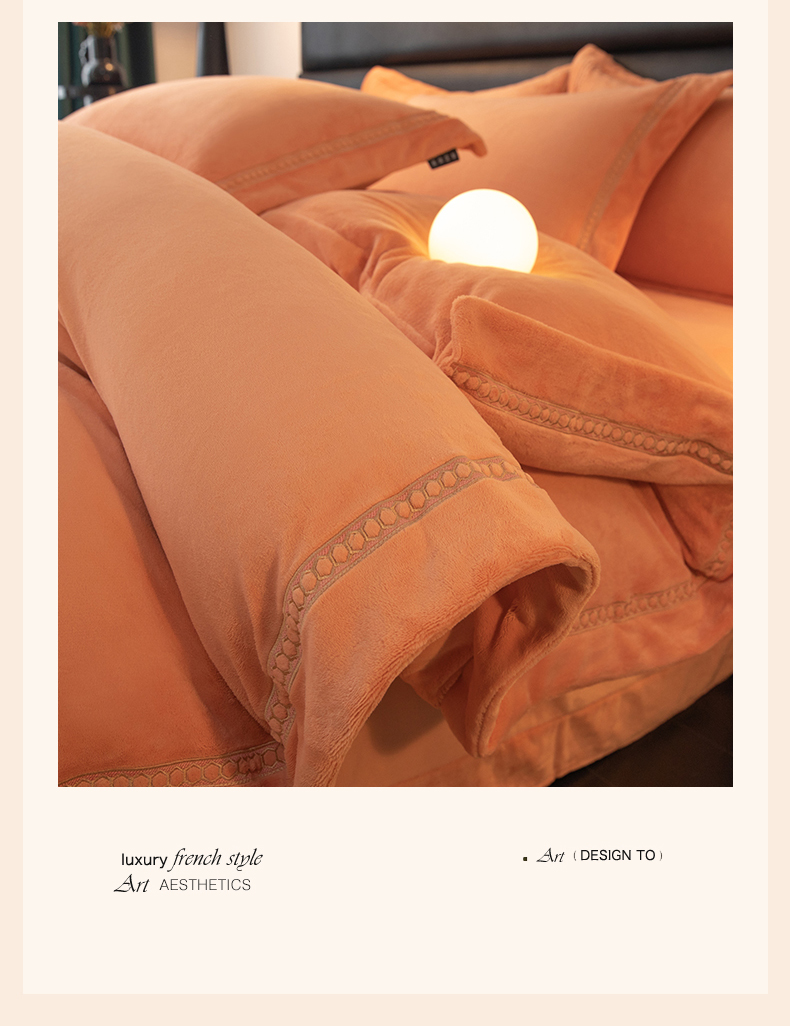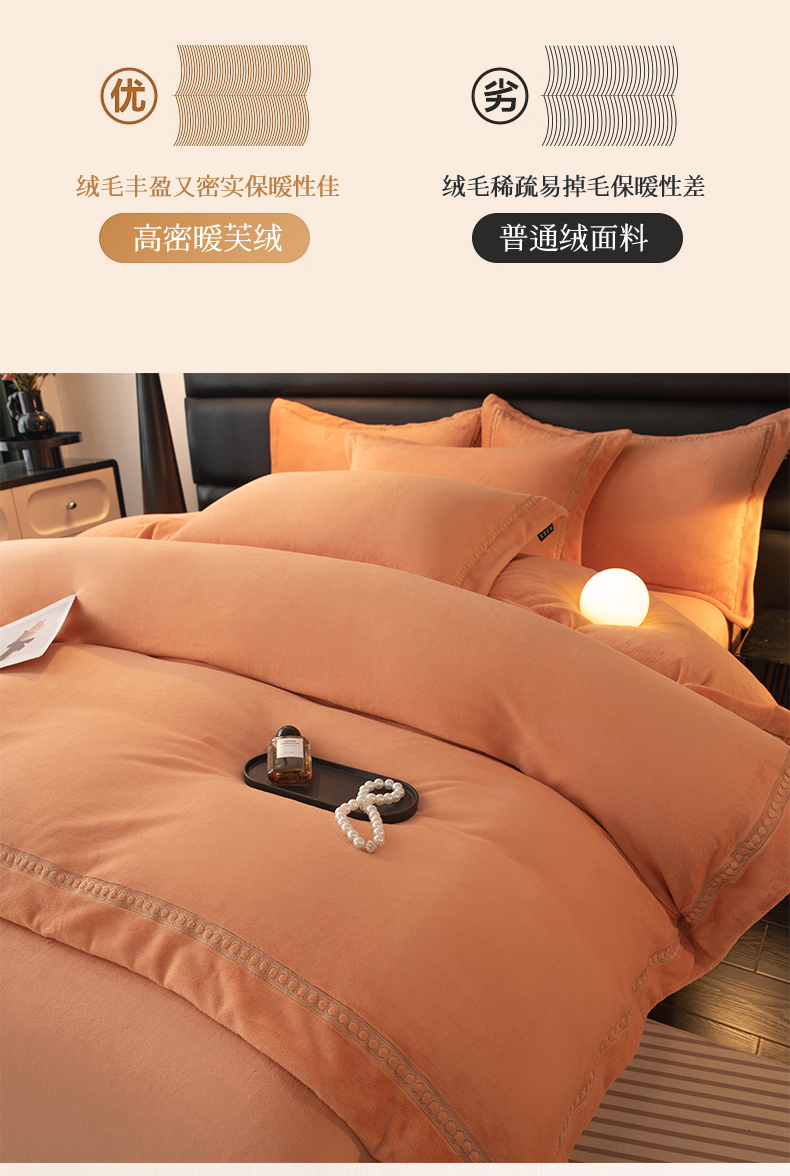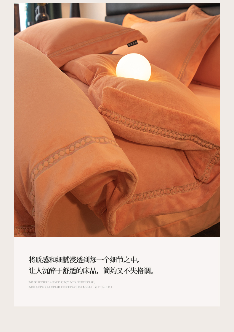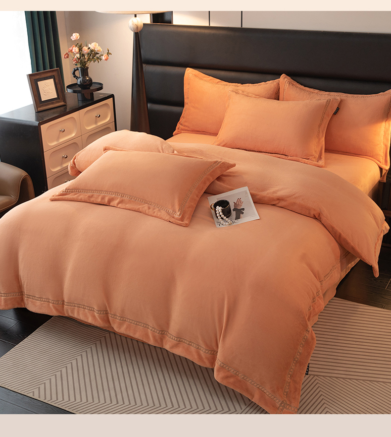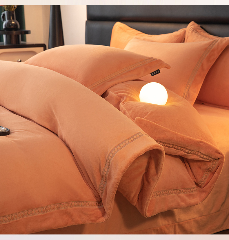 商品名称:暖洋家纺 2025新款暖芙绒纯色刺绣款套件四件套 爱玛橙