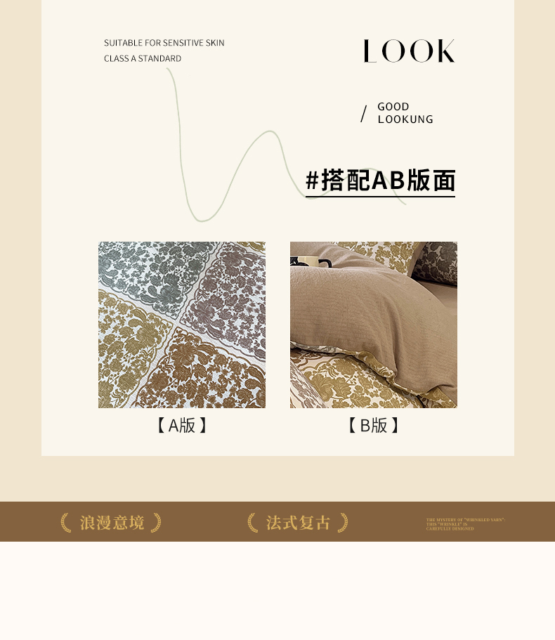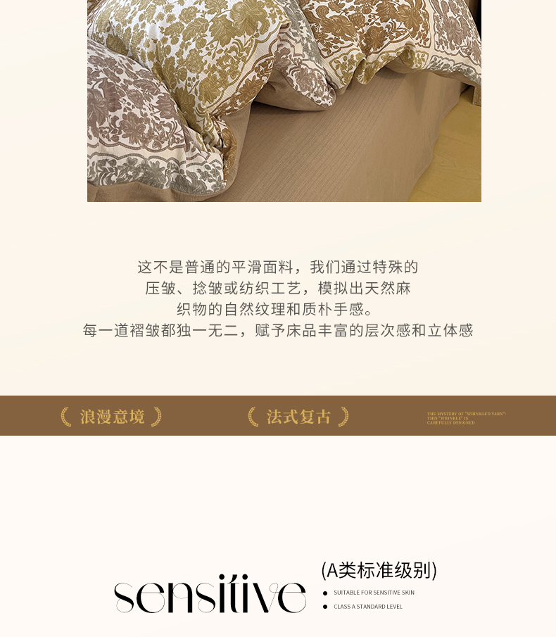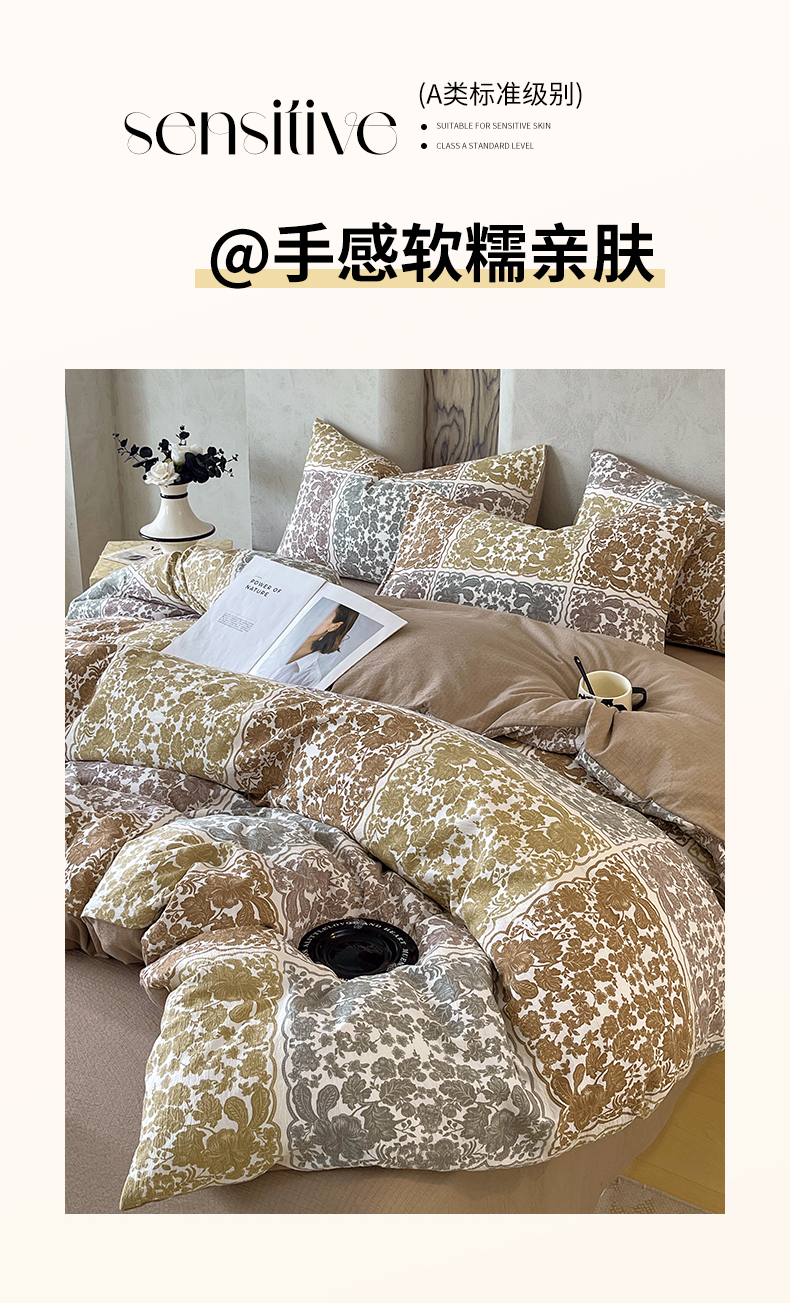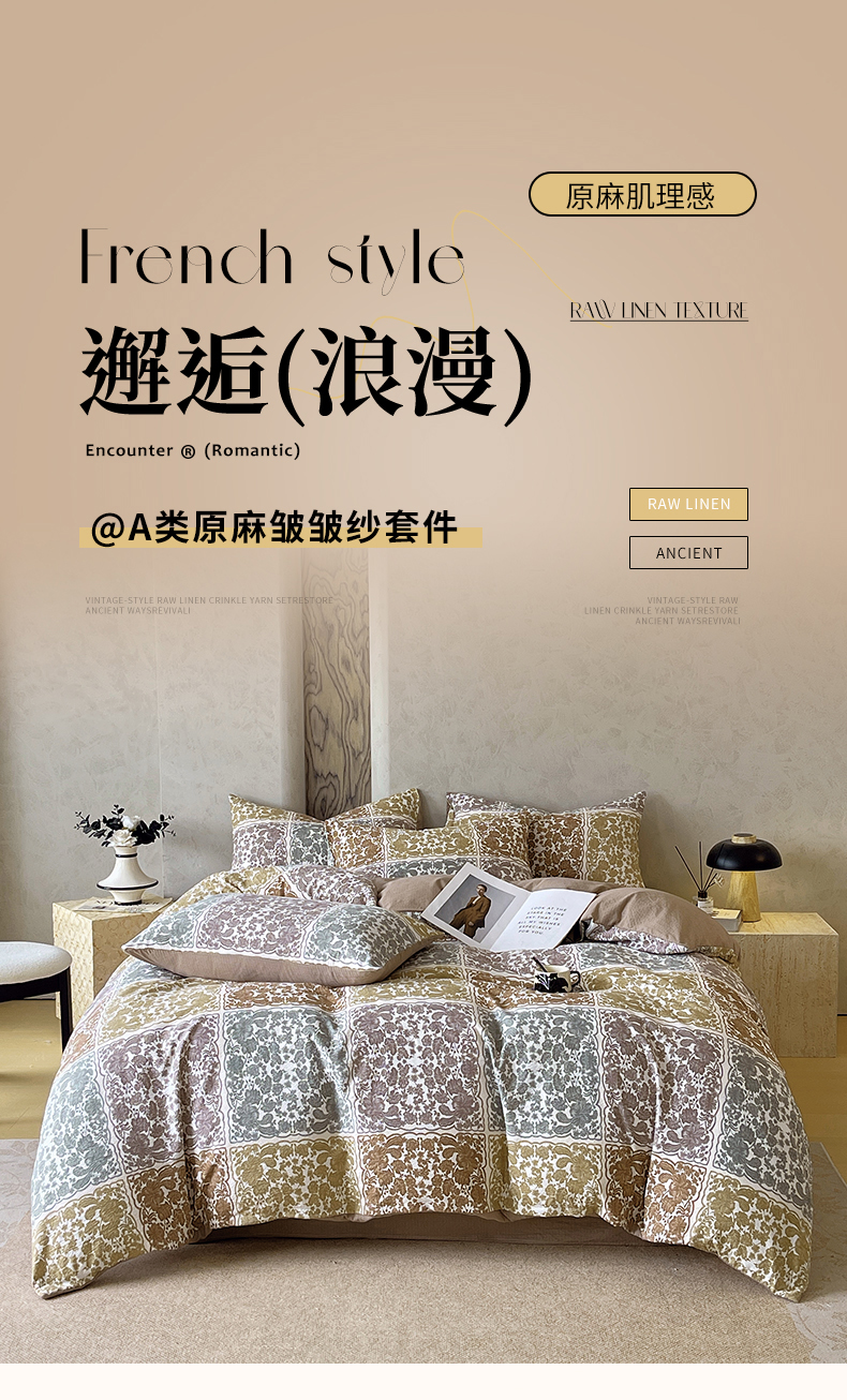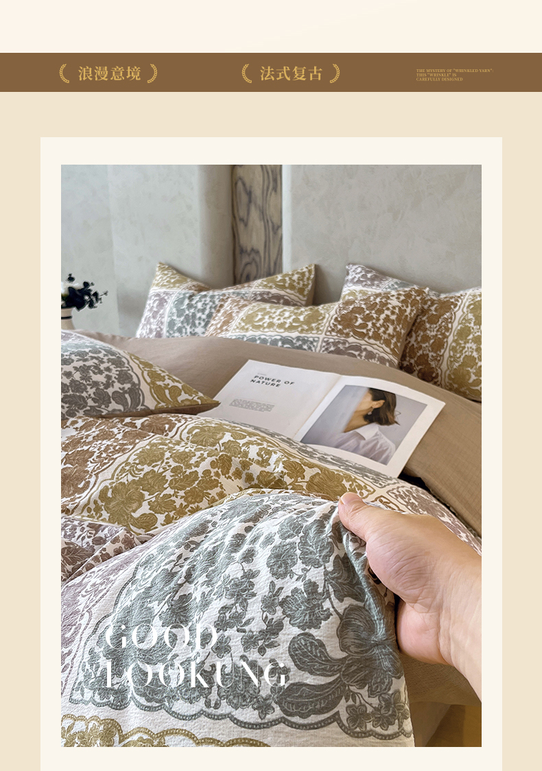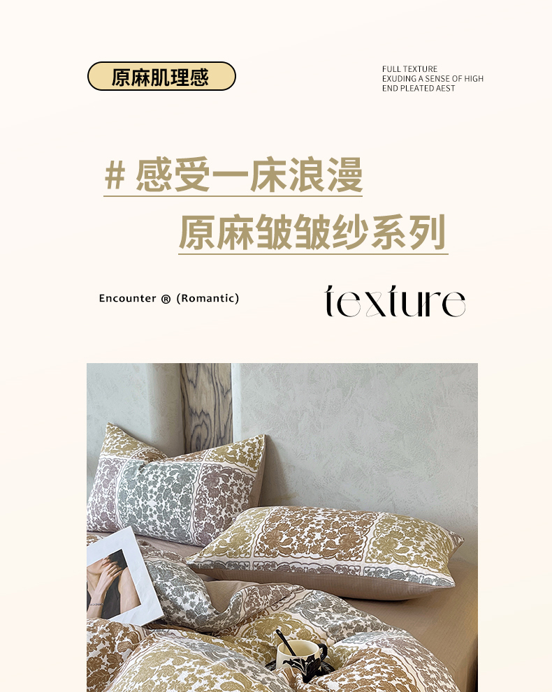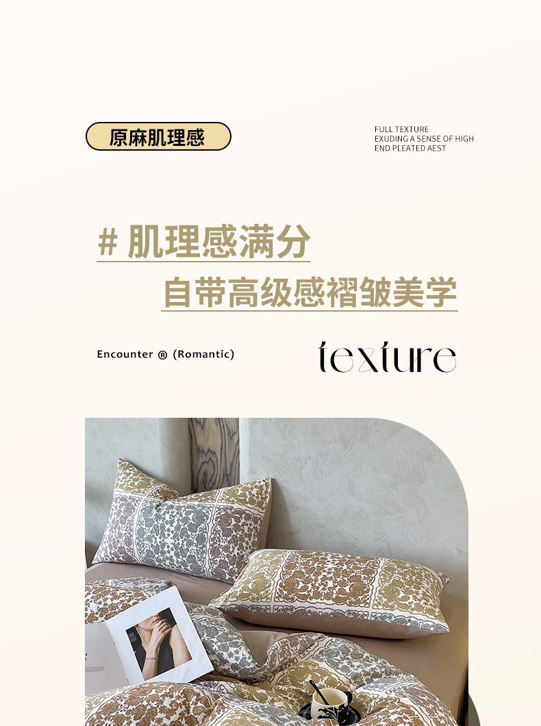 当前位置: 91家纺网 > 商品网购 > 床品套件 > 四件套 > 其它四件套 > 宝士康家纺 2025秋冬新品高克重A类原麻暗合四件套复古加厚双层纱仿亚麻套件 锦纹