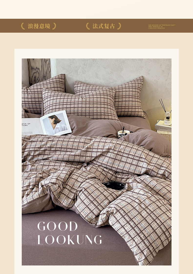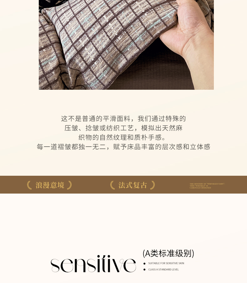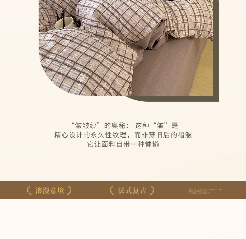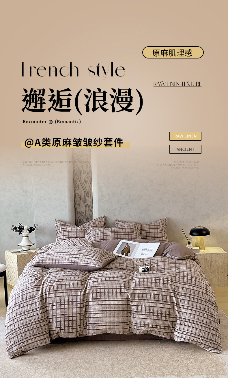 当前位置: 91家纺网 > 商品网购 > 床品套件 > 四件套 > 其它四件套 > 宝士康家纺 2025秋冬新品高克重A类原麻暗合四件套复古加厚双层纱仿亚麻套件 素格
