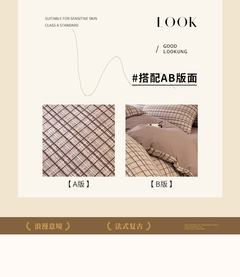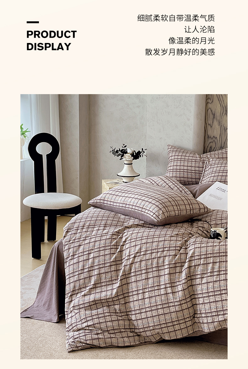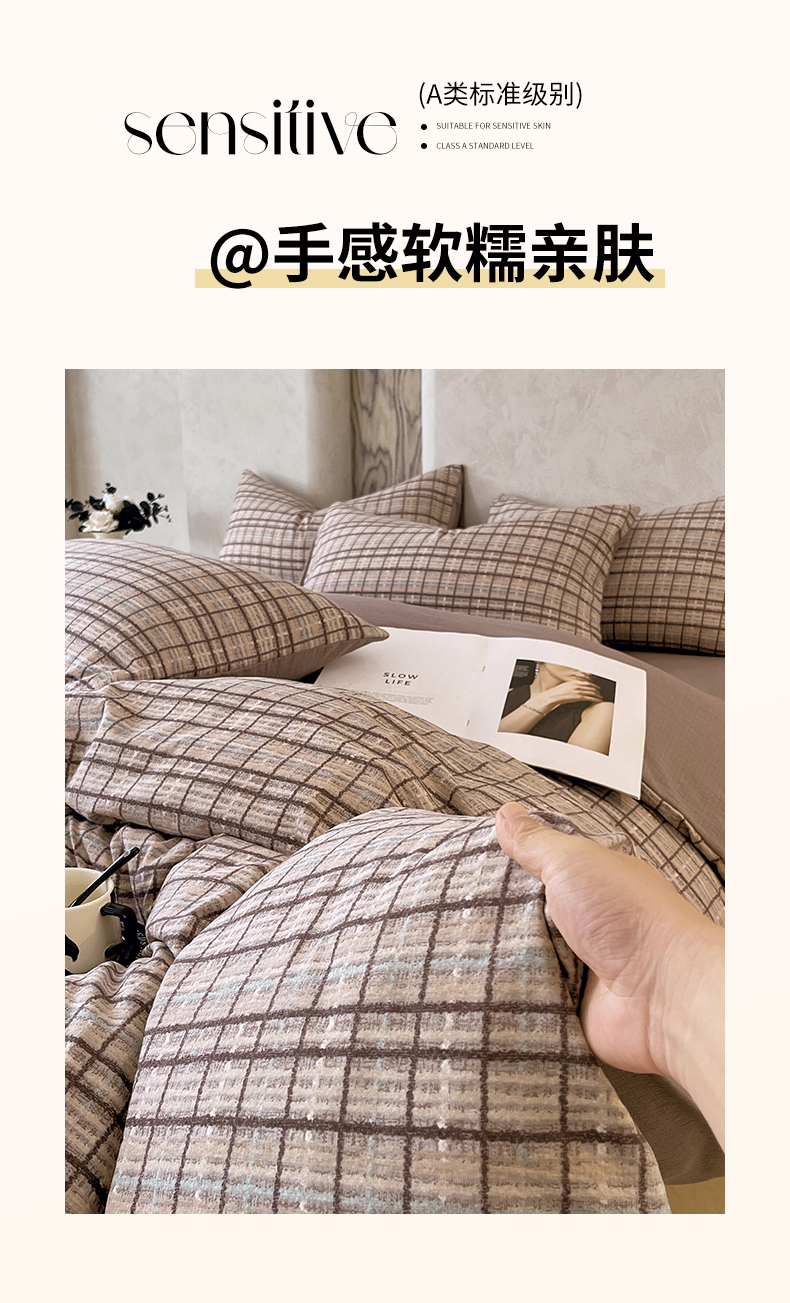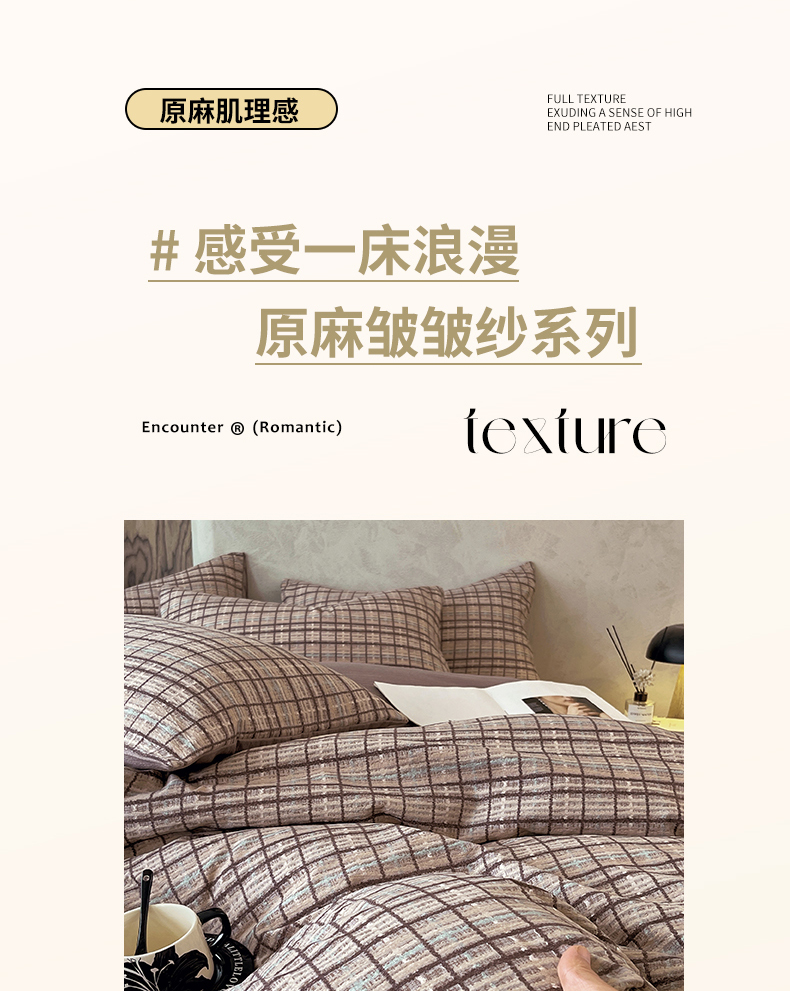当前位置: 91家纺网 > 商品网购 > 床品套件 > 四件套 > 其它四件套 > 宝士康家纺 2025秋冬新品高克重A类原麻暗合四件套复古加厚双层纱仿亚麻套件 素格