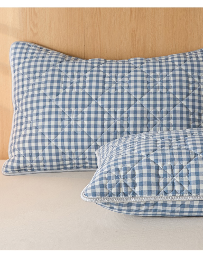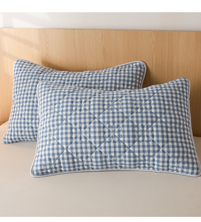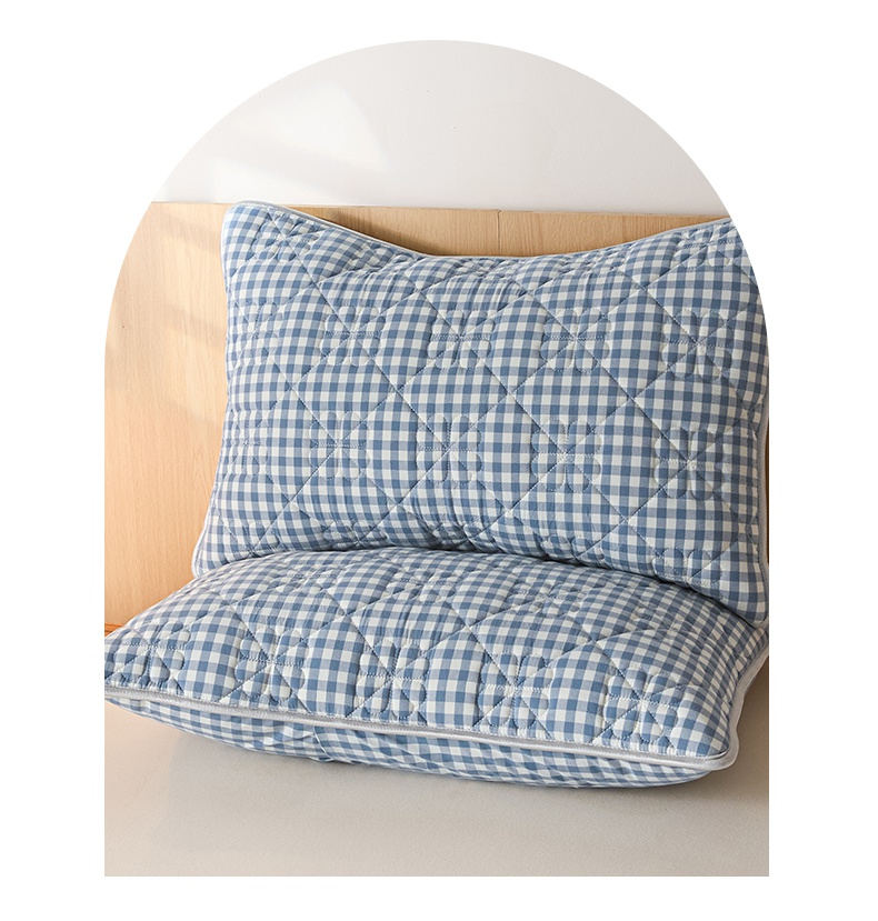 芬晴家纺 2025新款A类全棉格子枕套枕巾系列 枕套-小蓝格 48*74cm枕套一对
