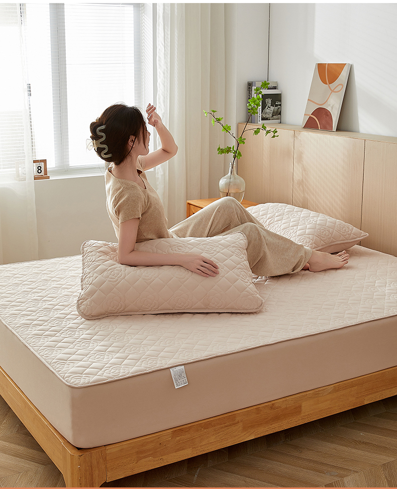 (总)卓越家纺 2025新款山茶花款防水夹棉床笠