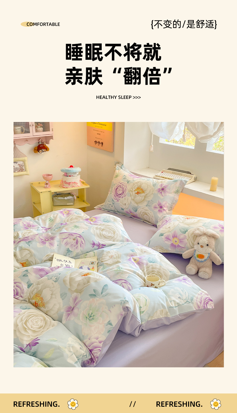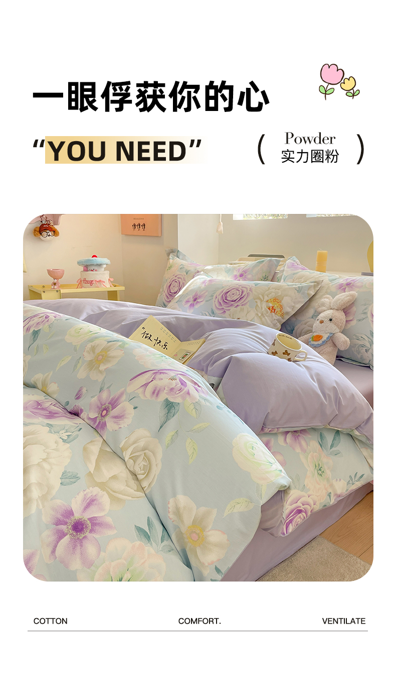 当前位置: 91家纺网 > 商品网购 > 床品套件 > 四件套 > 全棉普通四件套 > 帛美家纺 2025新款纯棉全棉印花四件套 春时曲