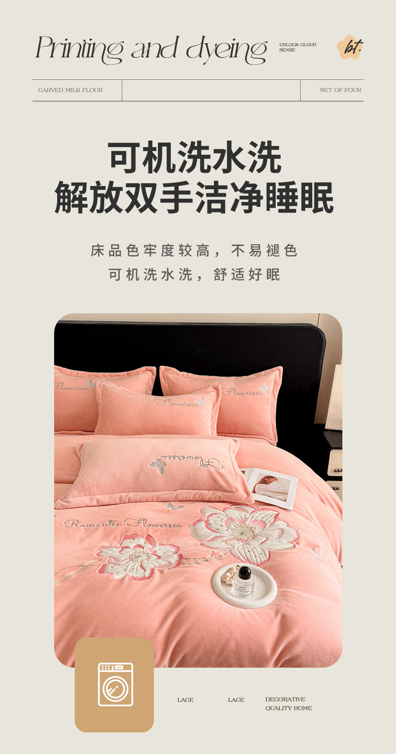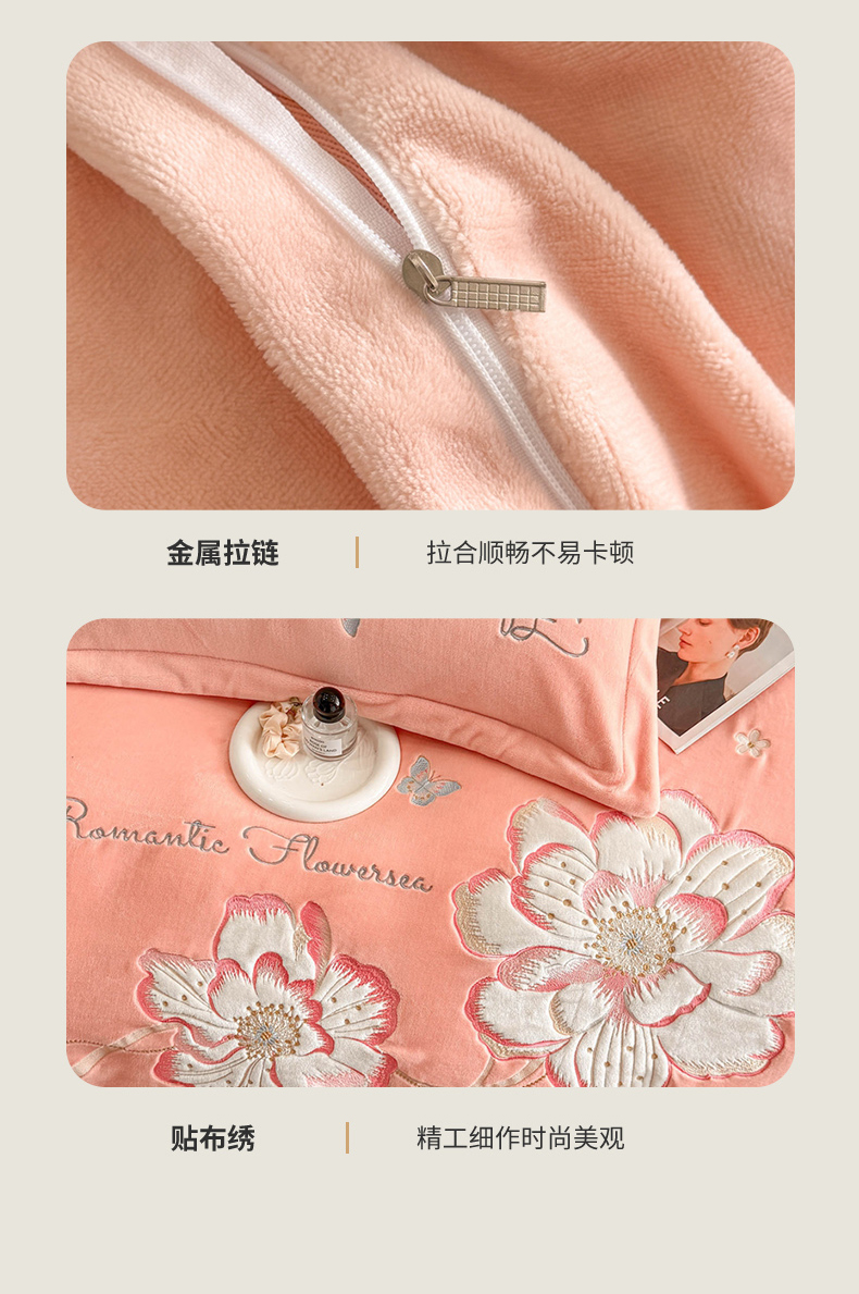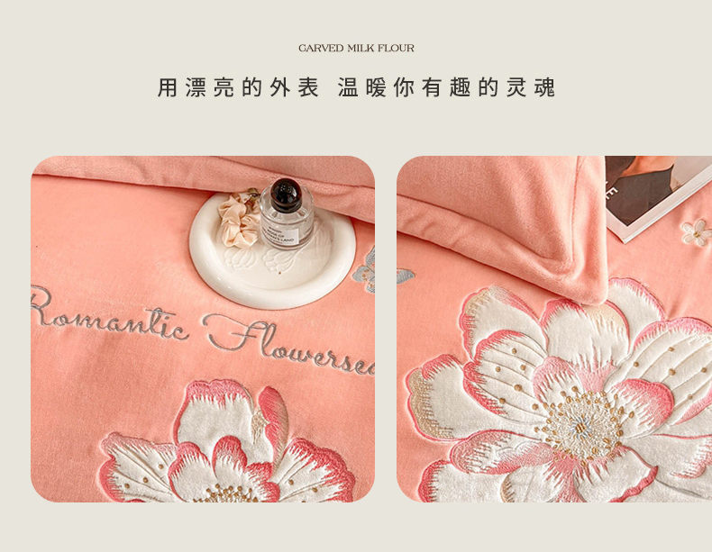 商品名称:畅畅家纺 2025新款牛奶绒大版贴布绣四件套 富贵花开-玉色