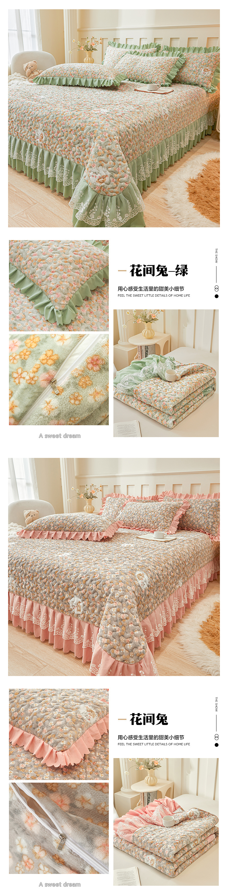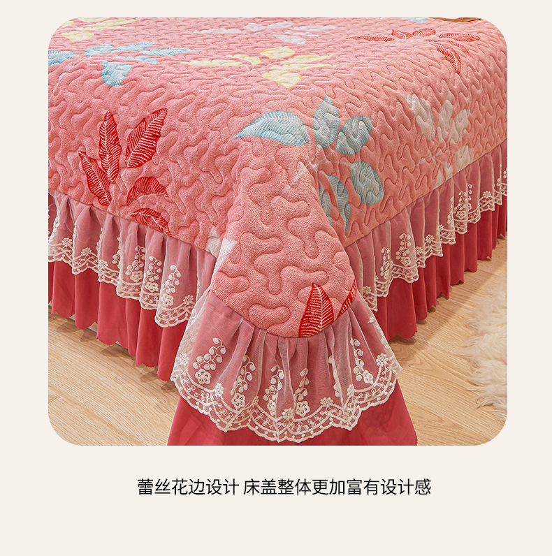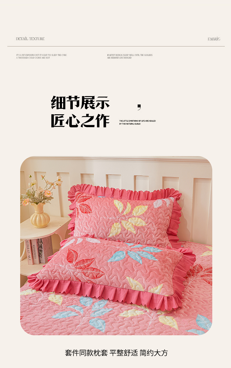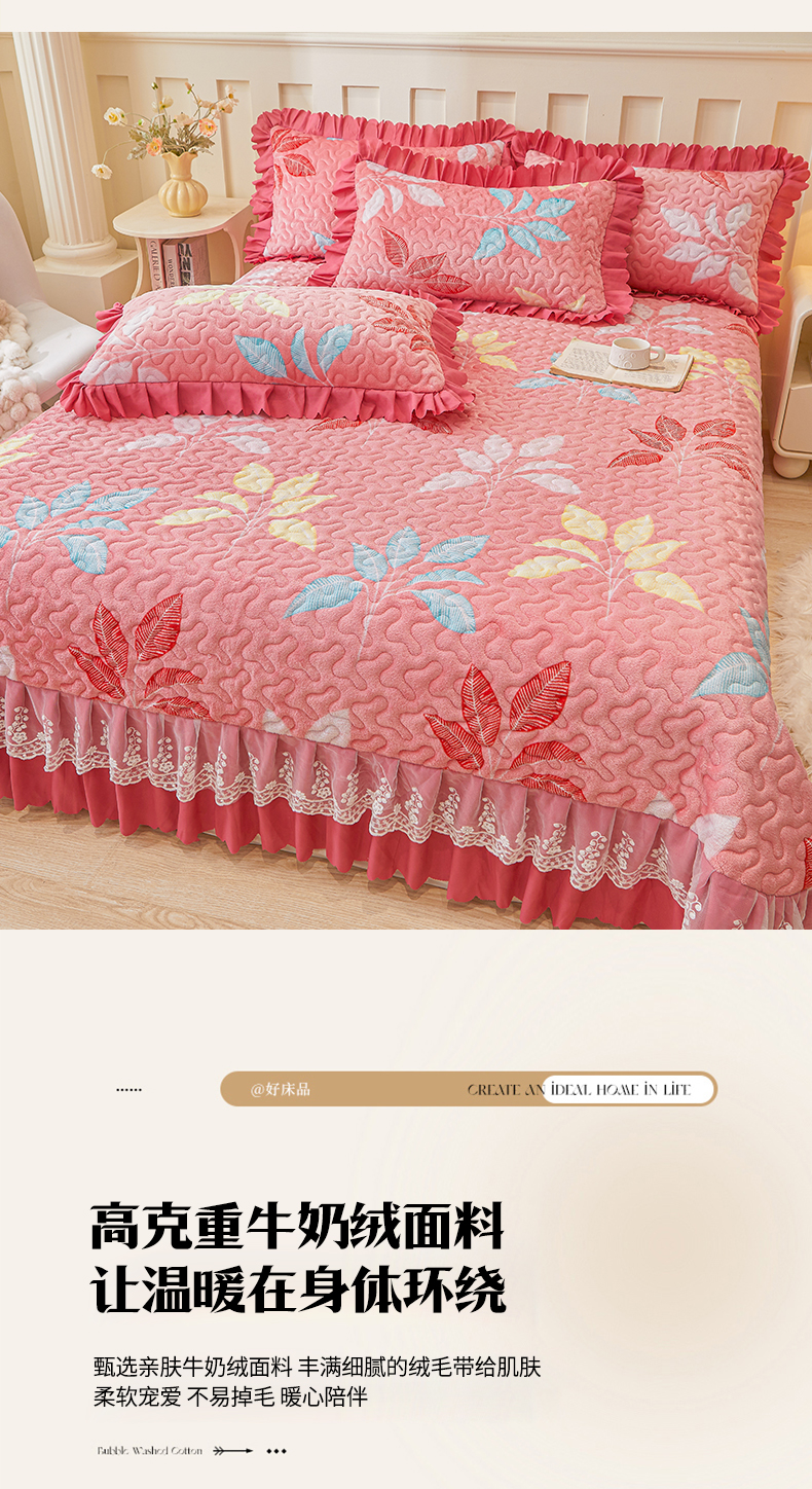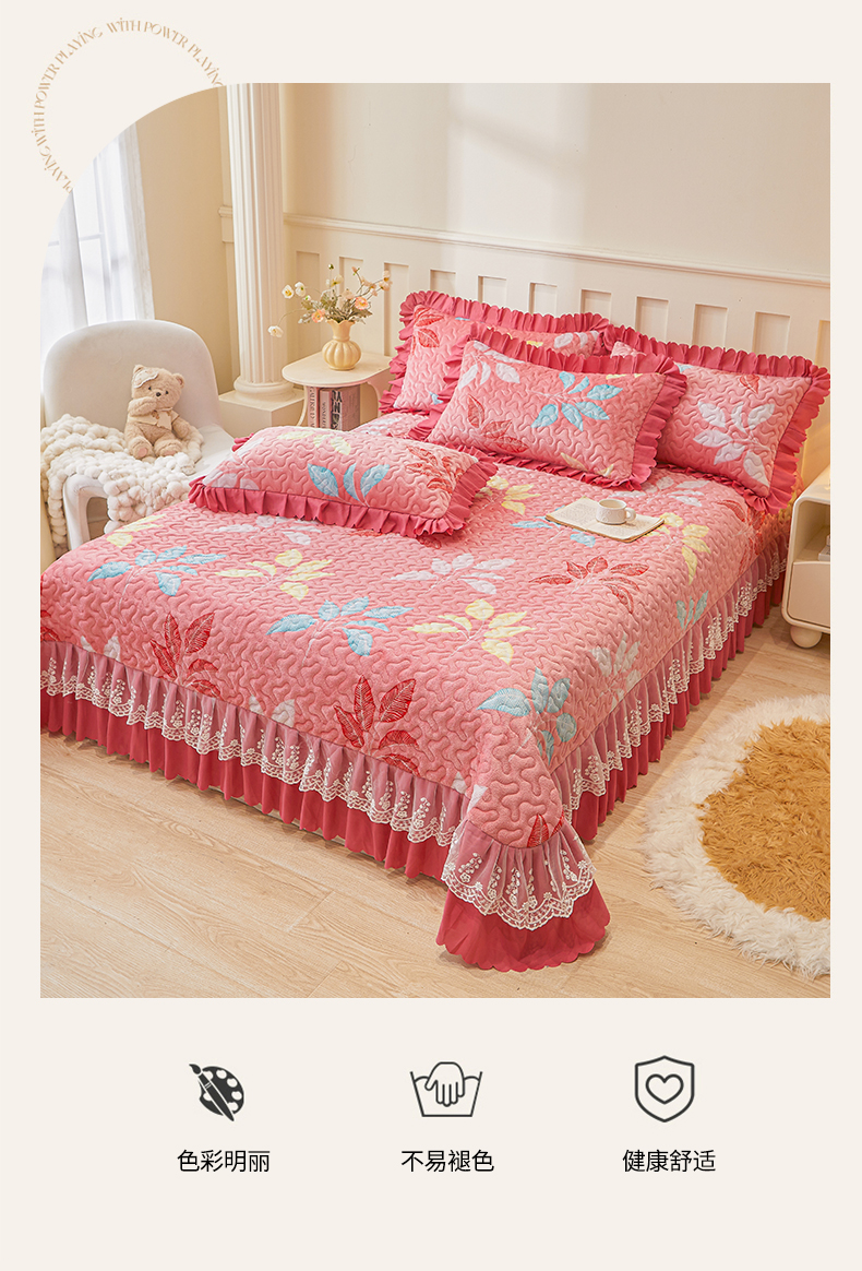 当前位置: 91家纺网 > 商品网购 > 床品套件 > 三件套 > 艾裙海 2025新款蕾丝边牛奶绒床盖三件套 七彩叶子