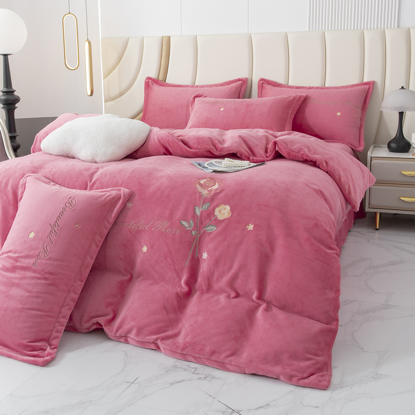 (总)贝尔 2025新款牛奶绒刺绣四件套-花语系列,花语-豆沙,花语-粉色,花语-高级灰,花语-蓝色,花语-浅绿,花语-玉色