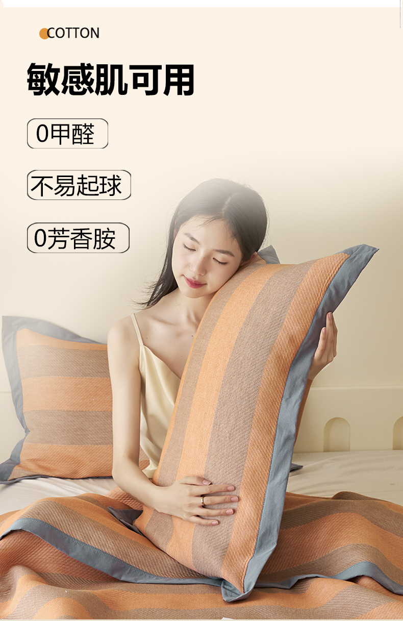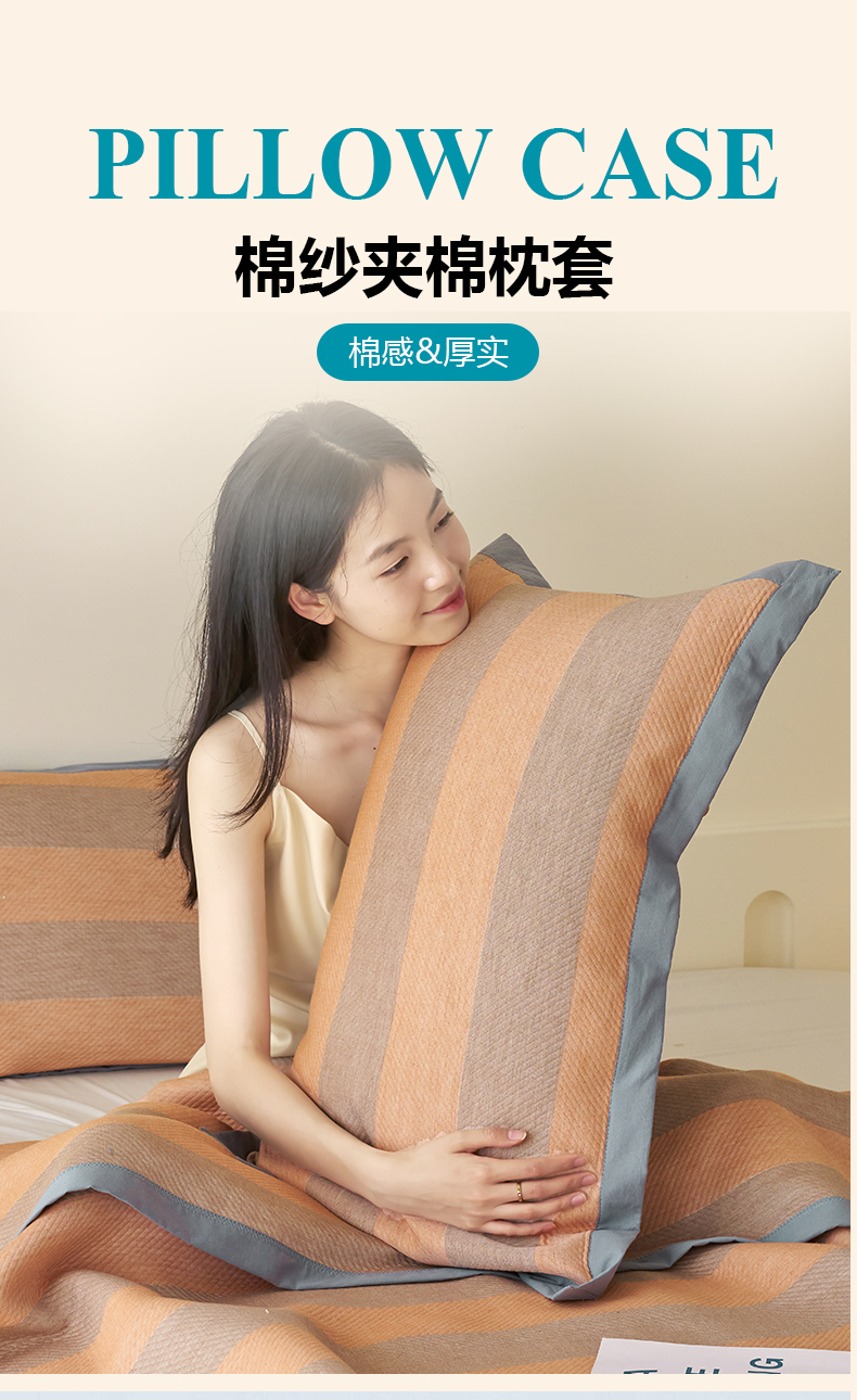 商品名称:棠薇家纺 2025新款三层纱布枕套单条装一对装枕头套加大加厚48*74cm枕芯套 极简生活橙