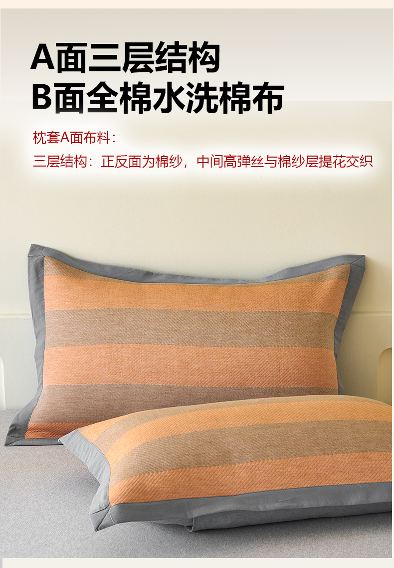 棠薇家纺 2025新款三层纱布枕套单条装一对装枕头套加大加厚48*74cm枕芯套 极简生活橙